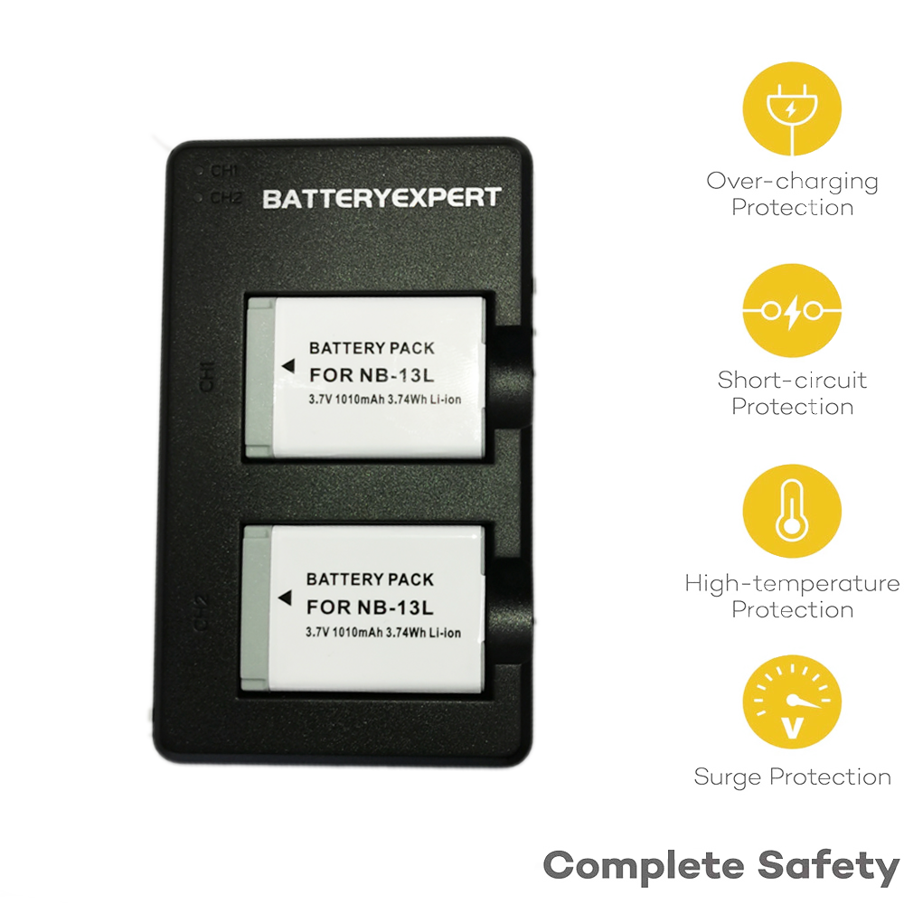 2 Batteries and Charger for Canon PowerShot G5X G7X G7X Mark II III SX720 HS SX730 HS SX740 HS SX620 HS G1X Mark III G9X G9X Mark II
