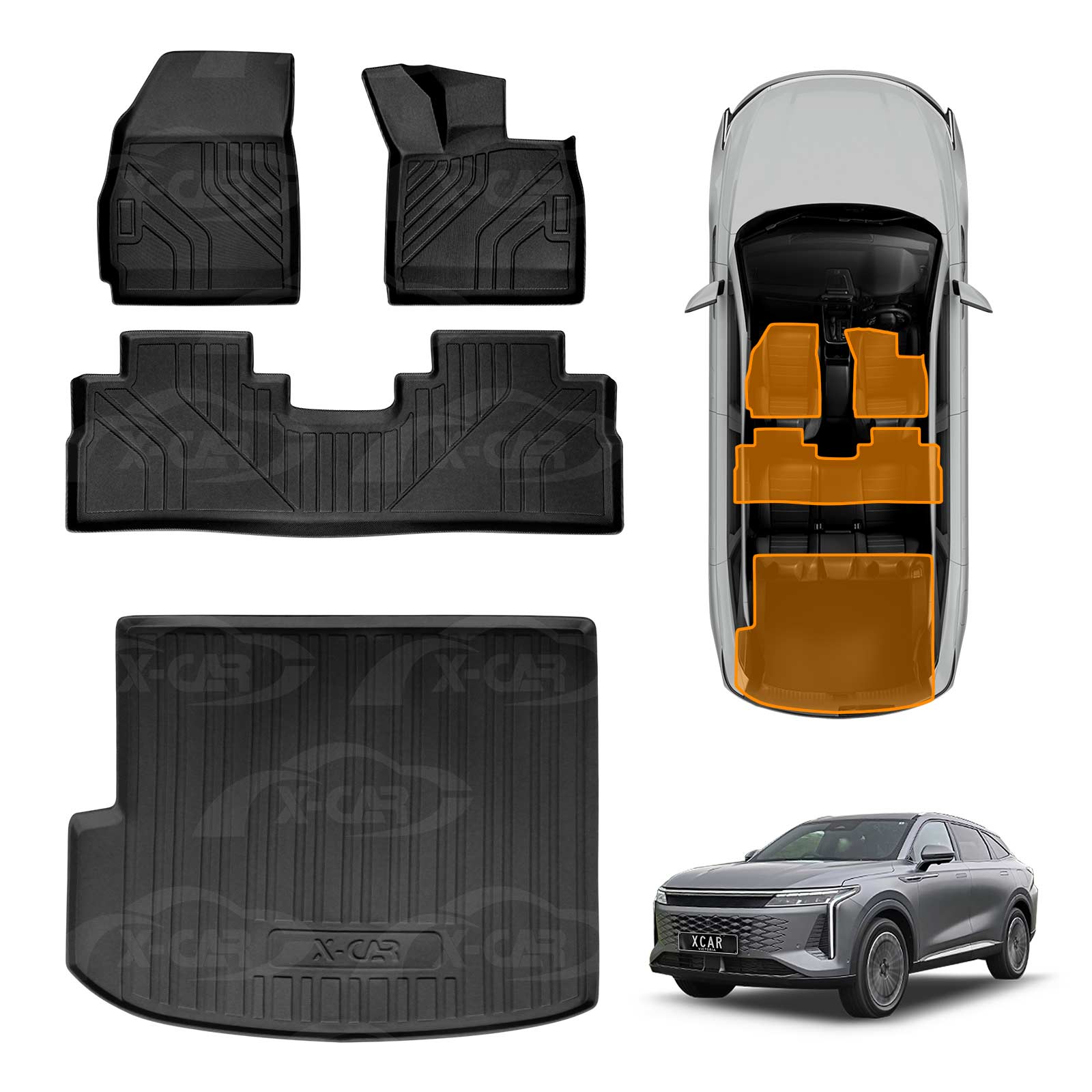 3D Floor Mats Boot Liner Set for Omoda Omoda 9 2025-Onwards All Weather Heavy Duty Cargo Car Trunk Luggage Tray