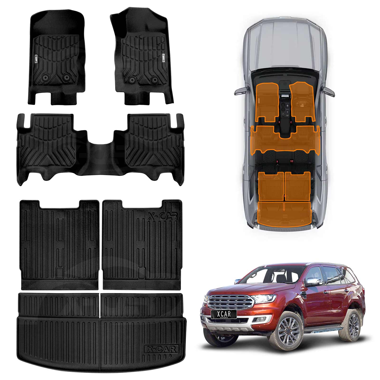 3D Floor Mats Boot Liners for Ford Everest SUV 2015-2022 All Weather Heavy Duty Cargo Car Trunk Luggage Tray