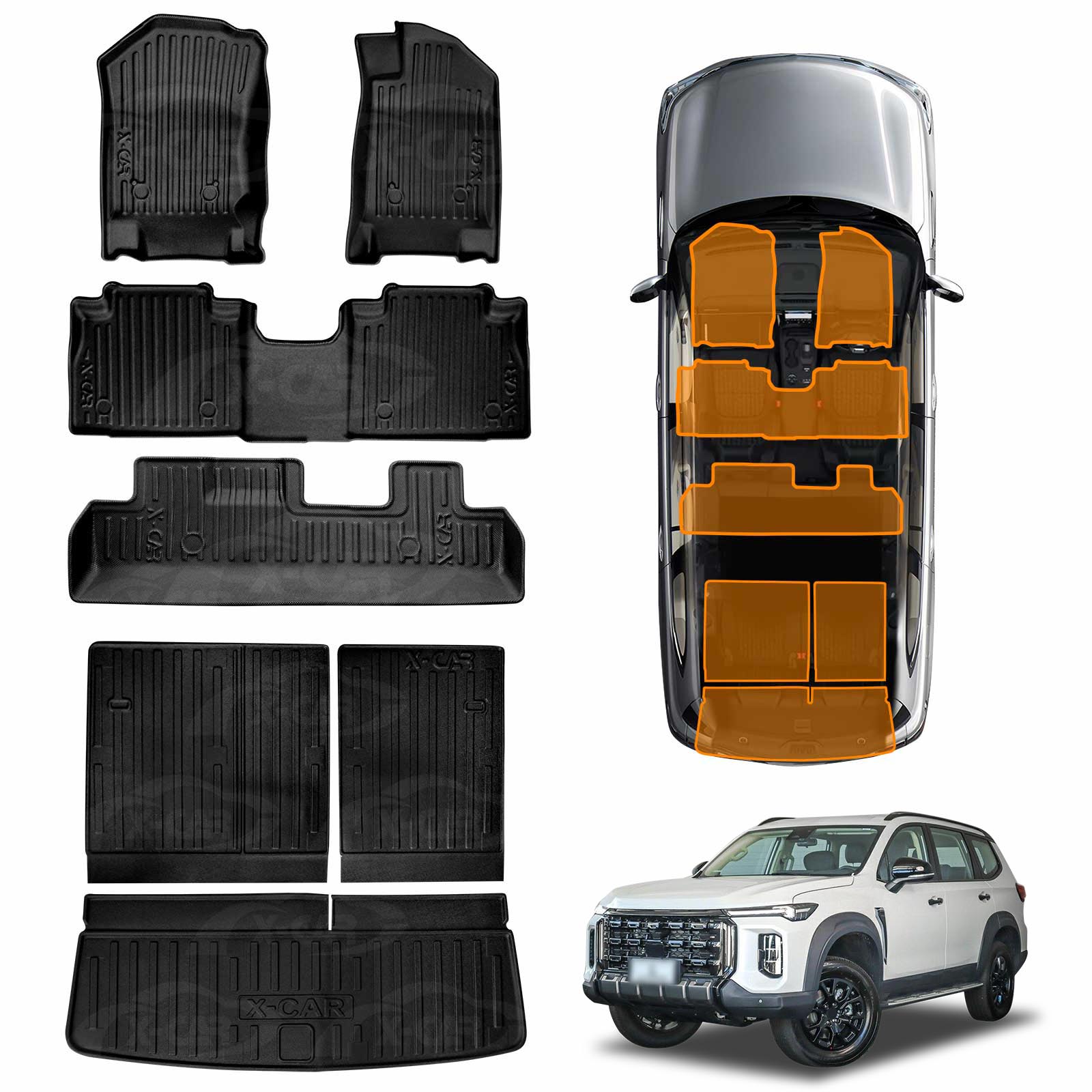 3D Floor Mats Boot Liners for LDV D90 2025-Onwards Heavy Duty All-Weather Car Mats & 3 Pcs Version Trunk Cargo Tray