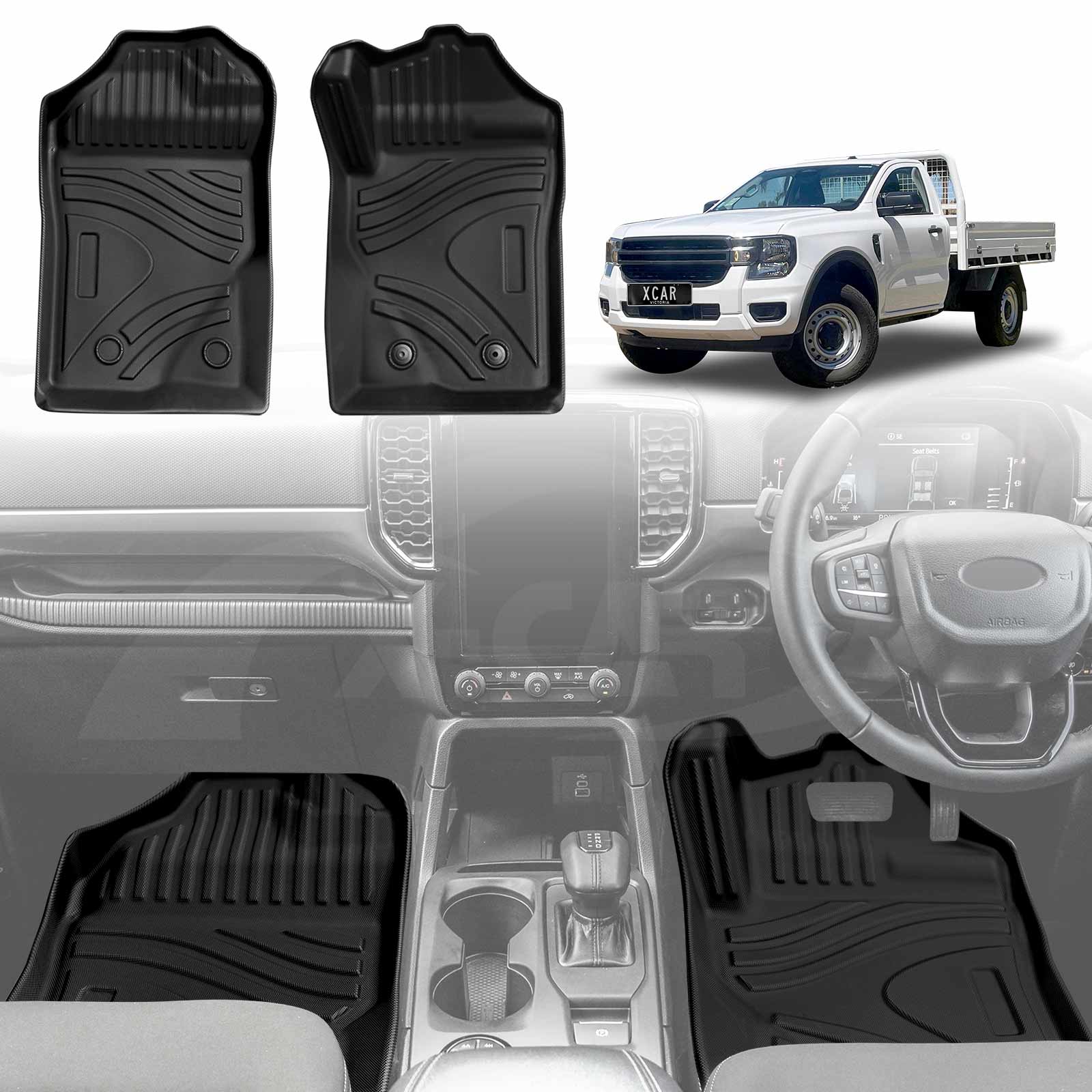 3D Floor Mats for Ford Next-Gen Ranger Single Cab 2022-Onwards Heavy Duty All Weather Car Mats Carpet Liner Set