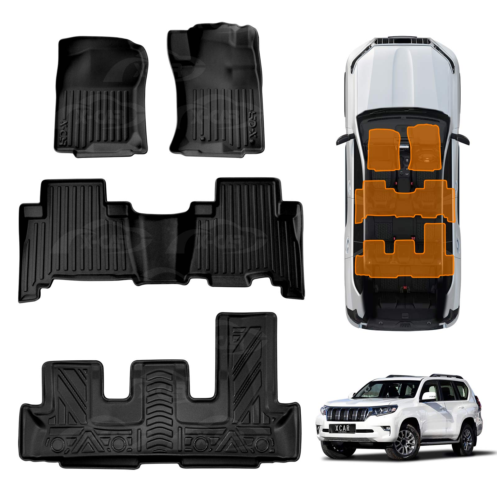 3D Floor Mats for Toyota Prado 150 Series 7-Seat 2009-2024 Heavy Duty All Weather Car Mats Carpet Liner Set