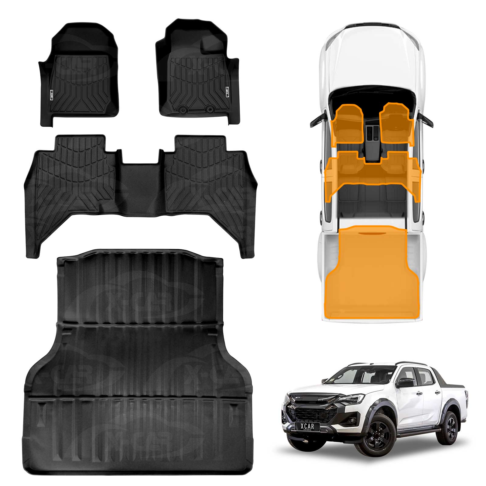 3D Floor Mats Tub Liner for ISUZU D-MAX DMAX Dual Cab 2020-Onwards All Weather Heavy Duty Cargo Car Trunk Luggage Tray