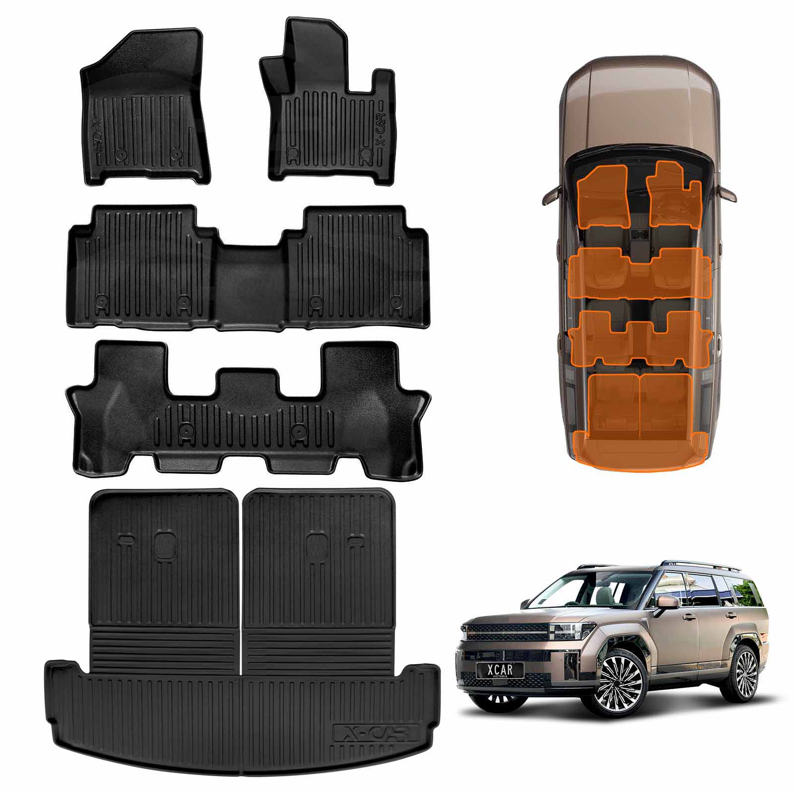 3D Heavy Duty All Weather Car Mats Boot Liner Floor Liner Full Set for Hyundai SantaFe Santa Fe 6/7 Seater 2024-2025 Cargo Trunk Mat