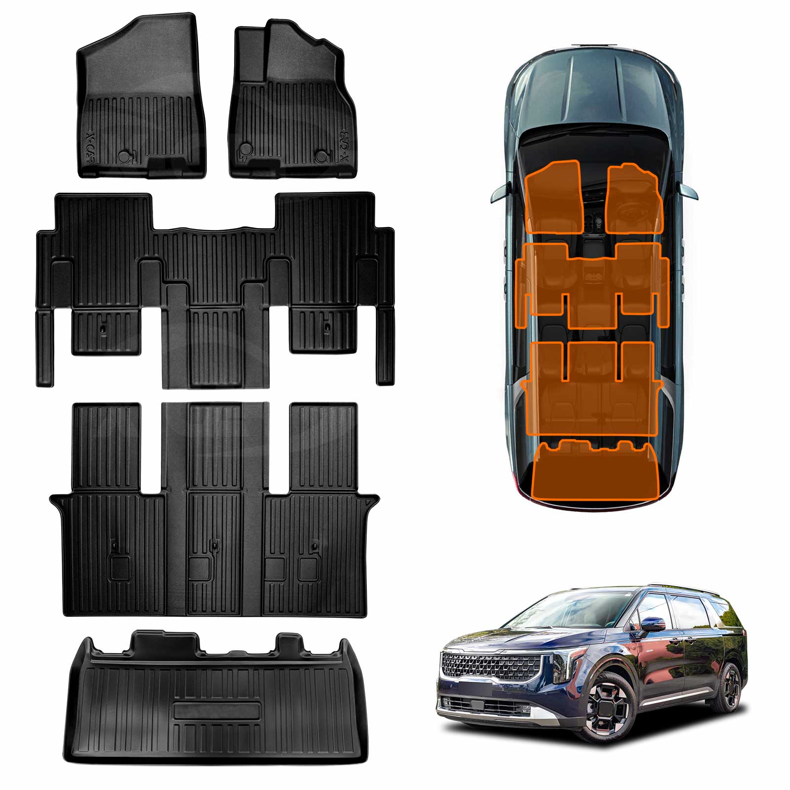 3D Floor Mats Boot Liner Set for Kia Carnival KA4 Series 2020-Onwards All Weather Heavy Duty Cargo Car Trunk Luggage Tray