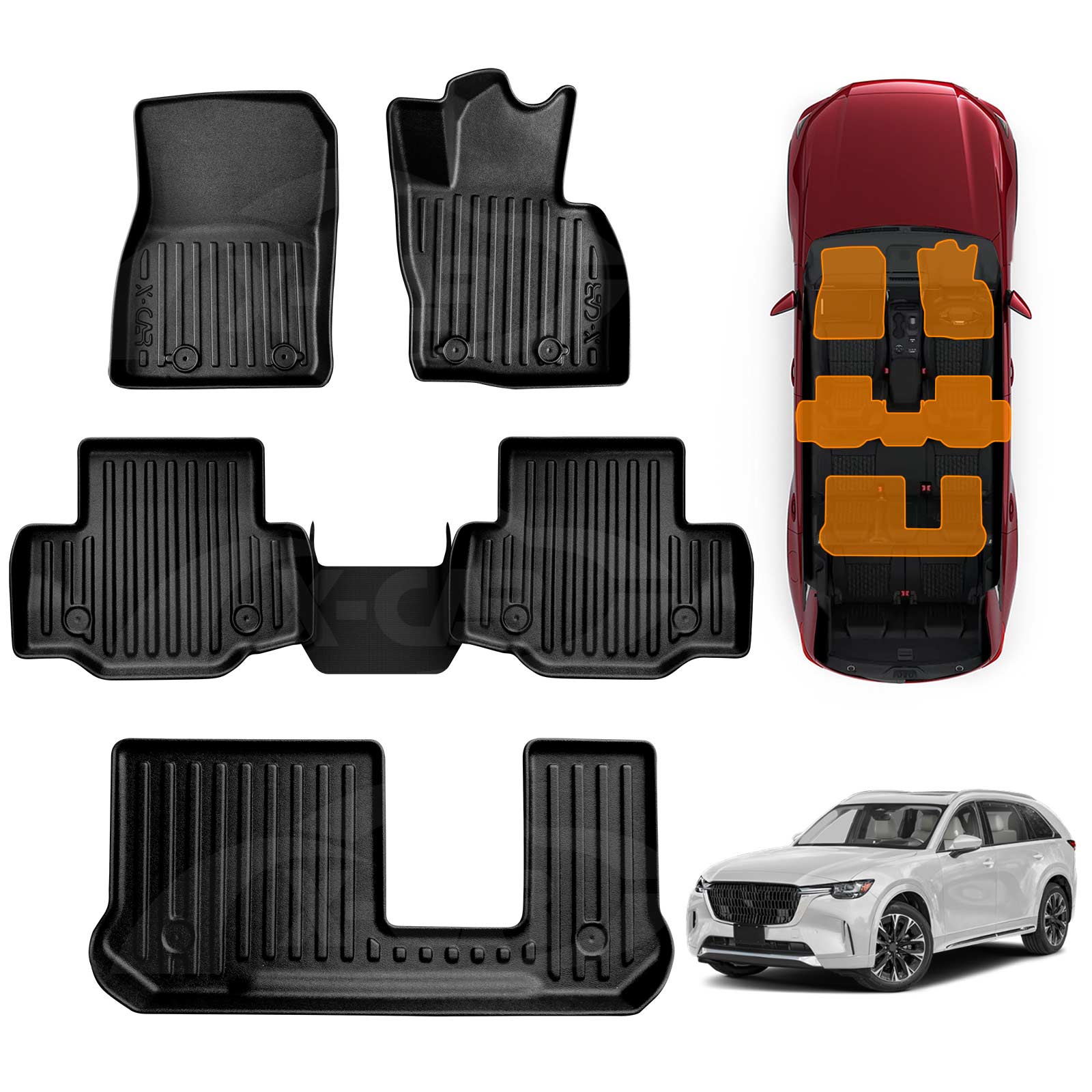 3D Floor Mats for Mazda CX-90 CX90 7-Seater 2023-Onwards Heavy Duty All Weather Car Mats Carpet Liner Set Car Accessories