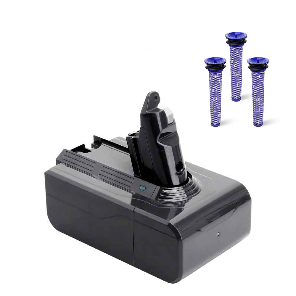 4.0Ah Replacement Battery and 3x Washable Pre Filter for Dyson V6 DC58 DC59 DC62 DC74 SV03 SV05 SV06 SV09 Animal Absolute Handheld Vacuum