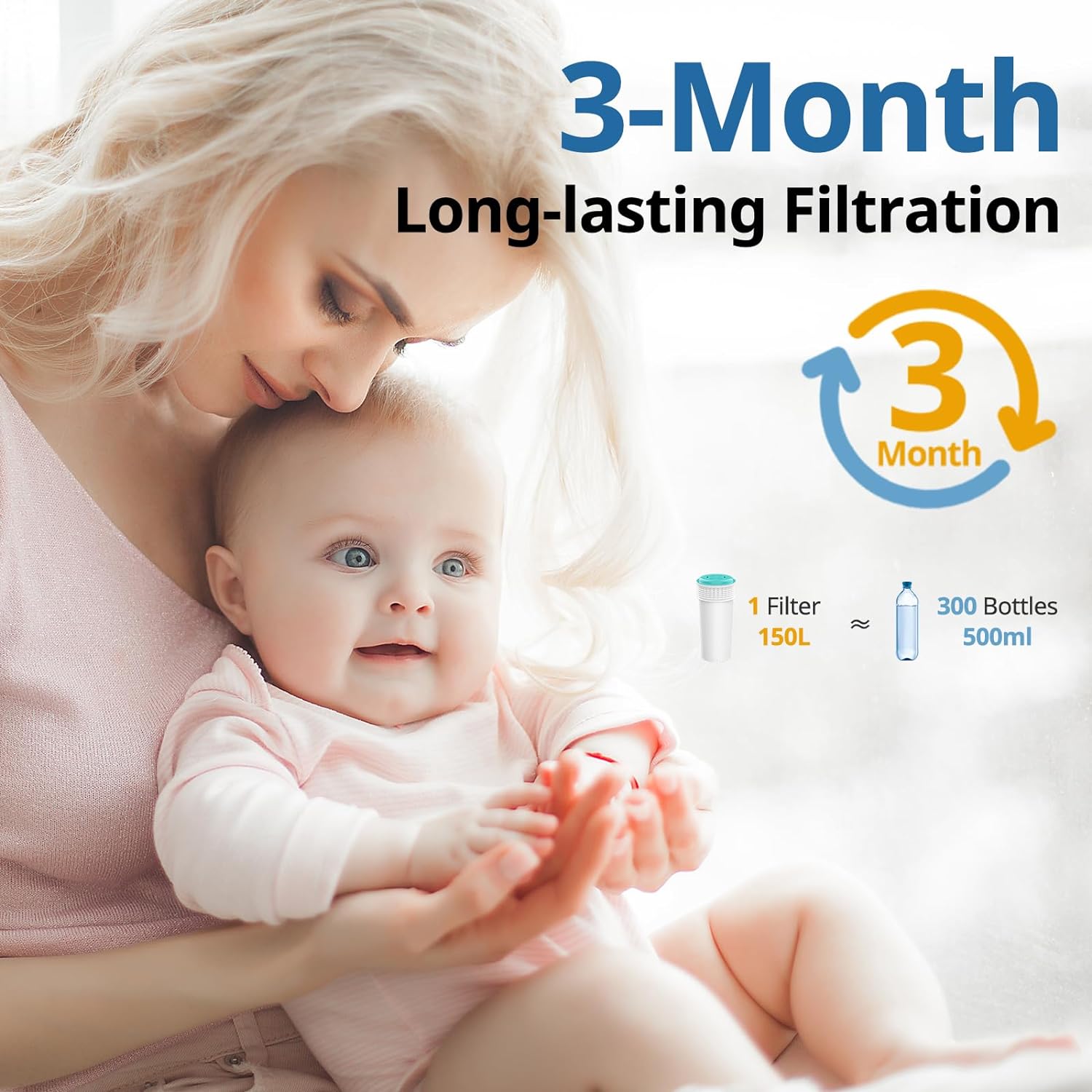 - Long-Lasting Quality: 3 Months' Refreshment — To keep your water at its best quality, we recommend replacing your water filter every 3 months or 150 litres, whichever comes first depending on your usage/water hardness in your area