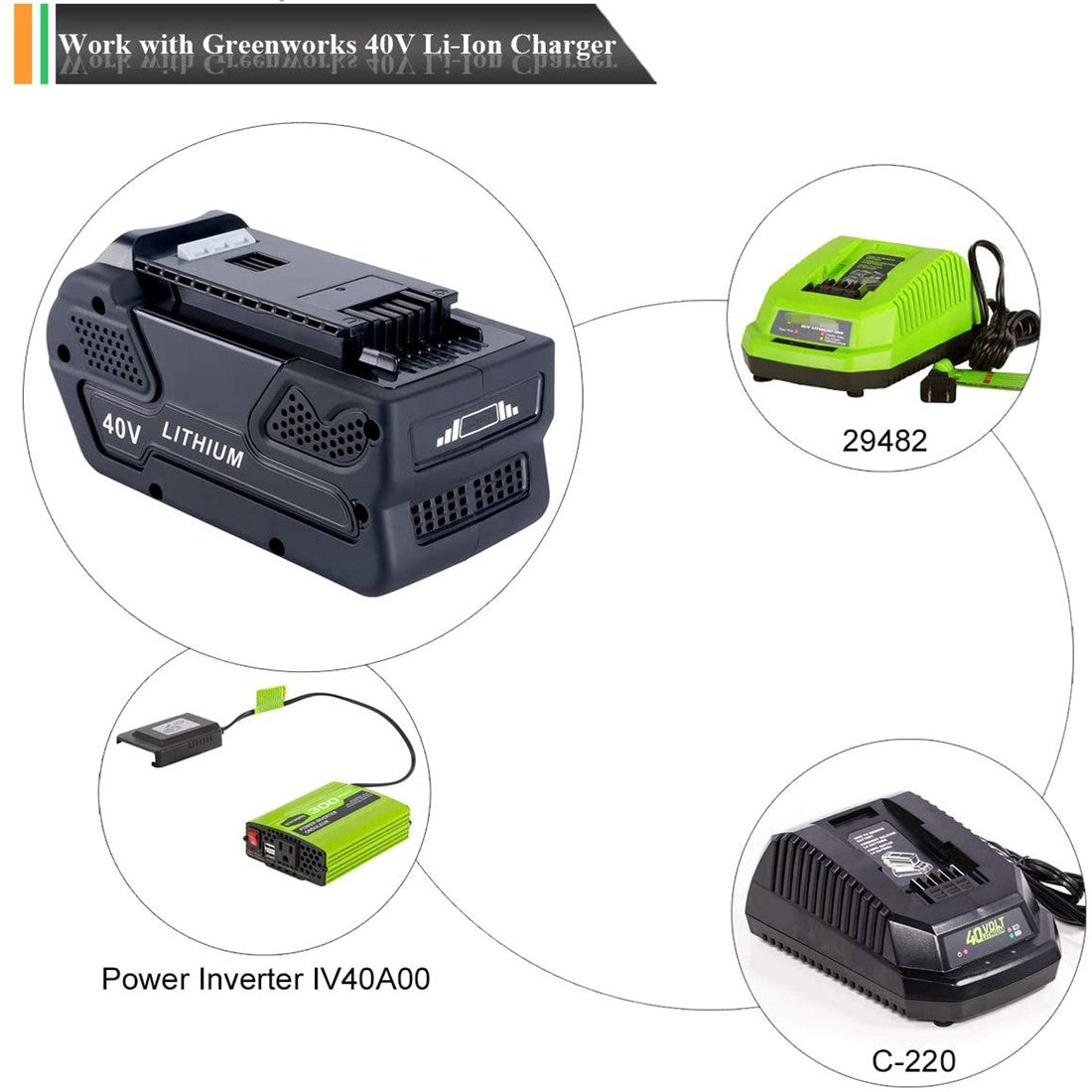 If you are looking for replacement for your Greenworks Battery, this 40V Replacement Battery for Greenworks Cordless Power Tools is the smart choice for you. With real cell capacity of our 40v Battery, you are guaranteed a high-quality and reliable power supply.