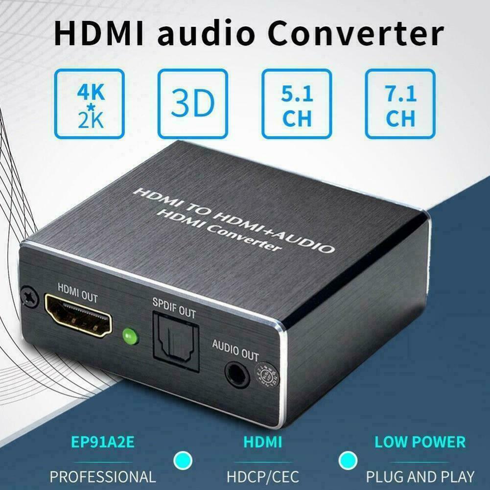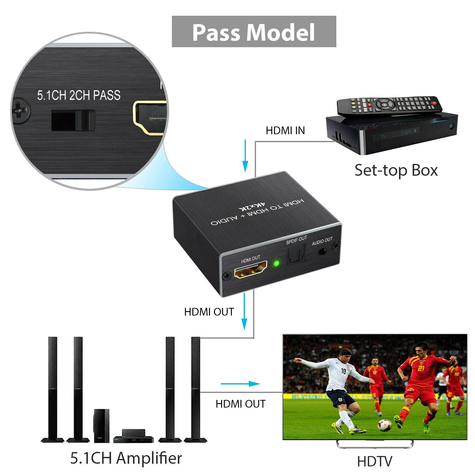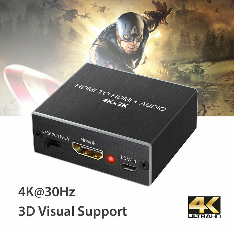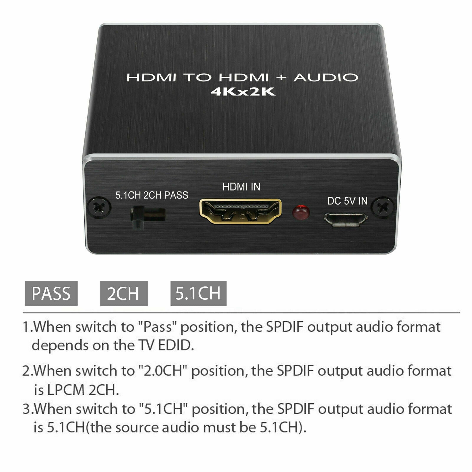 - This 4K x 2K HDMI audio extractor not only meet the ideal image of the HDTV but also meet the need for extract audio from an HDMI source. It can extract the digital audio signal embedded in HDMI source and convert it through 3.5mm analog audio output and SPDIF output at the same time. The SPDIF output both can support 2CH audio or 5.1CH audio including Dolby Digital 5.1CH and DTS 5.1CH.
