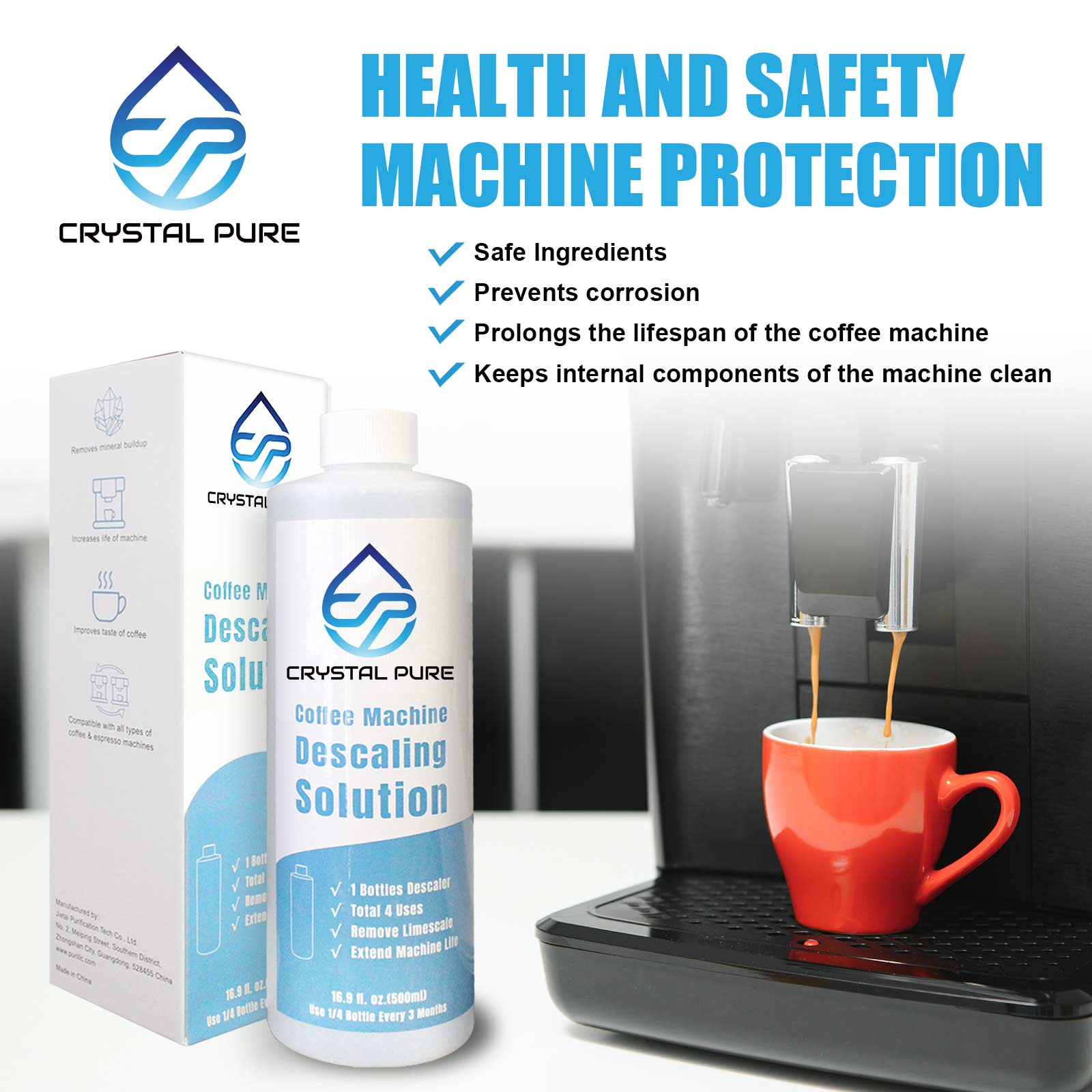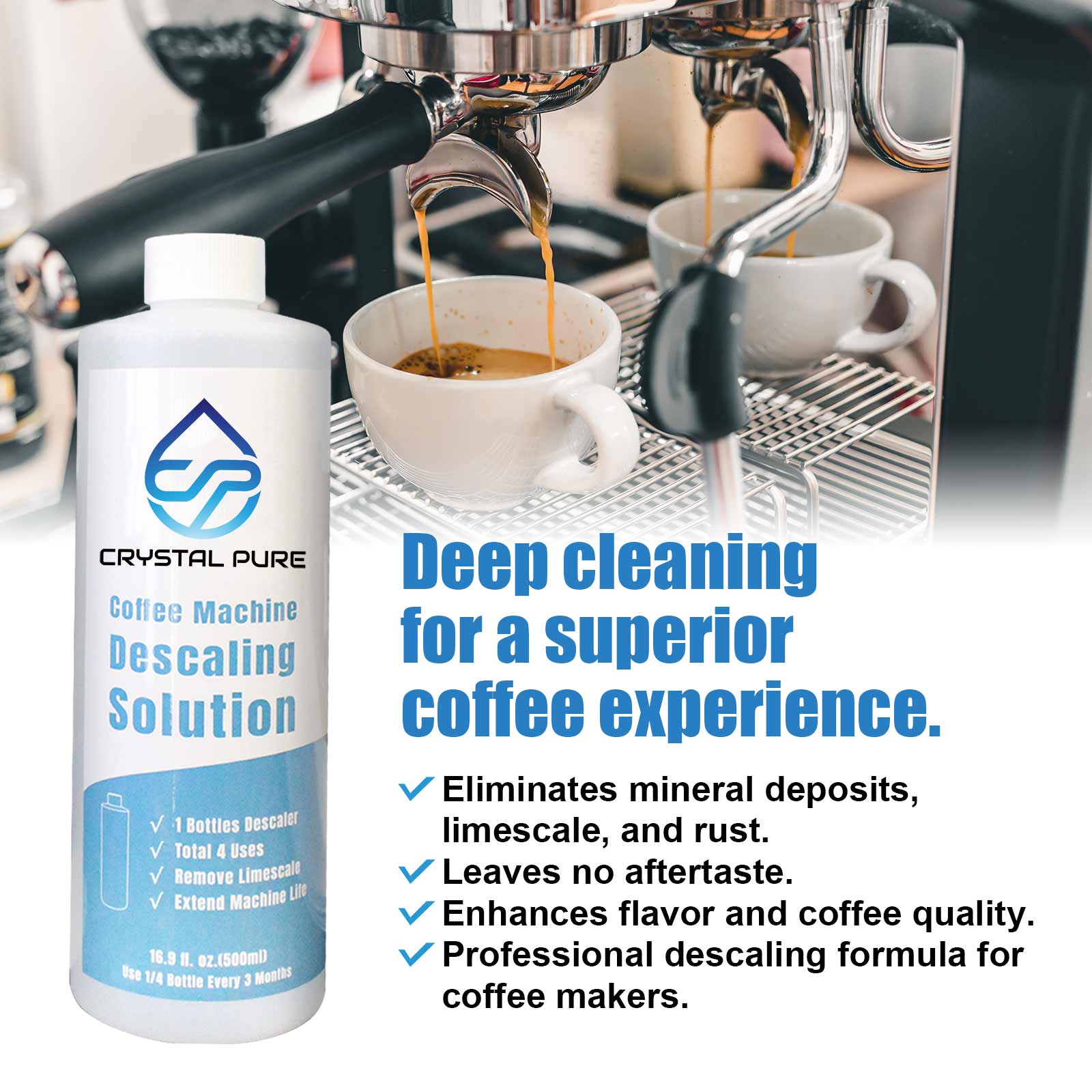 - SGS certified, concentrated liquid designed to decalcify (delime or descale) espresso machine water tanks and coffee brewing equipment.