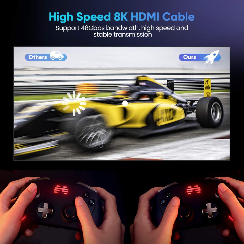 - For Game Enthusiasts: This HDMI Cable is not limited to 4K@60HZ, it can break through 4K and achieve 8K ultra-high image quality. It can also achieve a super smooth picture of 4K@120HZ. Its latest game mode supports variable refresh rate, maximizes the value of the graphics card and CPU, and is more accurate in the processing of rendered images. When the scene is switched, the refresh rate will change accordingly to obtain a smoother and more detailed picture.