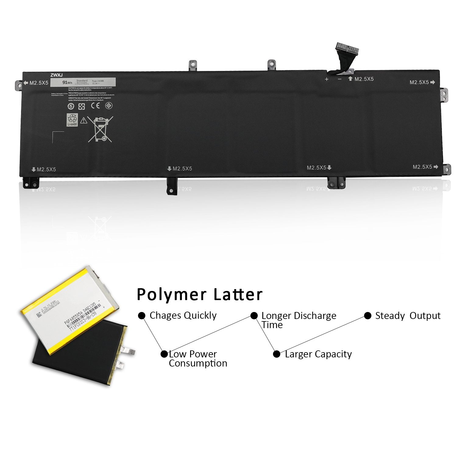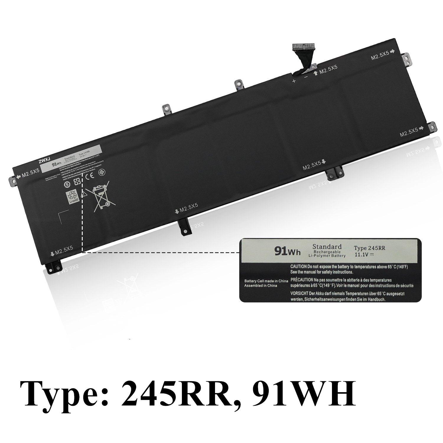 91Wh Dell XPS 15 9530 9535 Precision 3800 M3800 Laptop Replacement Battery, Only fit battery part # 245RR