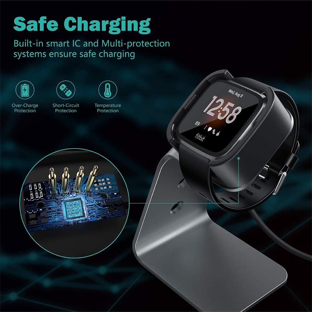 Aluminium USB Charger Charging Stand Dock Cradle for Fitbit Versa & Versa Lite & FB505 Smart Watch