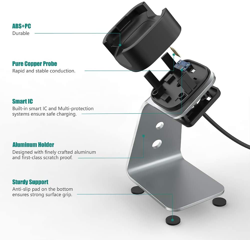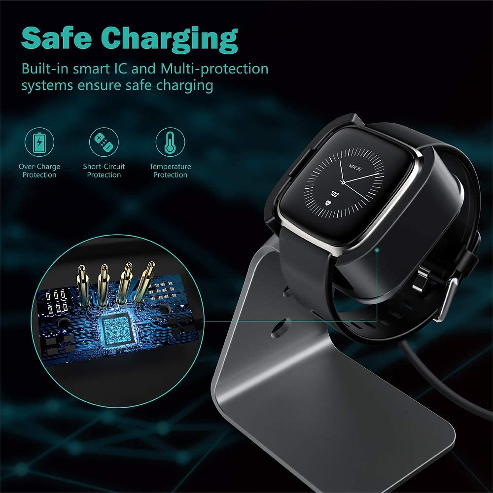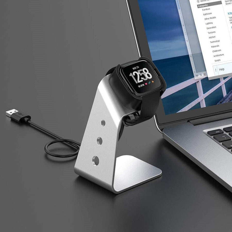 Aluminium USB Charger Charging Stand Dock Cradle Holder for Fitbit Versa 2 Smart Watch