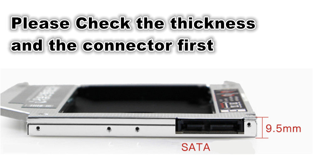 - Fit for 2.5" SATA HD /HDD/SATA II SDD/SSD (9.5mm thickness)