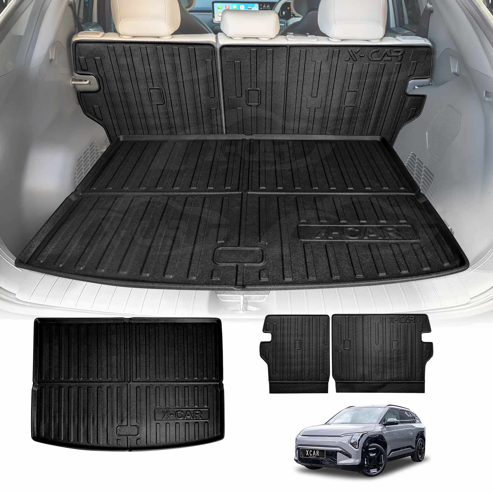 Boot Liner Kick Mats Set for Kia EV3 2025-Onwards All Weather Heavy Duty Cargo Car Trunk Back Seat Protector