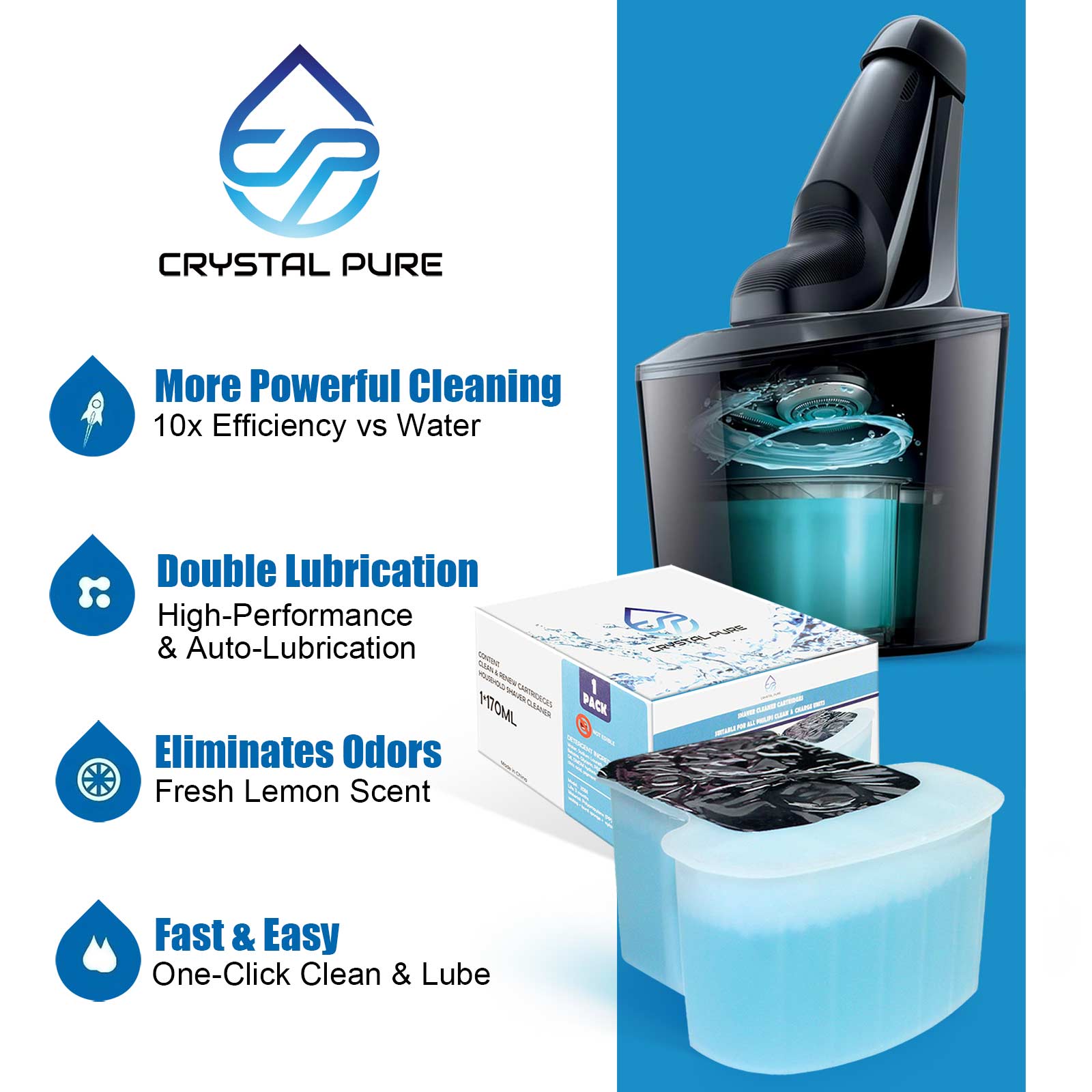 - The alcohol-free cleaning solution provides a powerful, hygienic clean without harsh chemicals, effectively removing hair, skin oils, and debris after every shave.