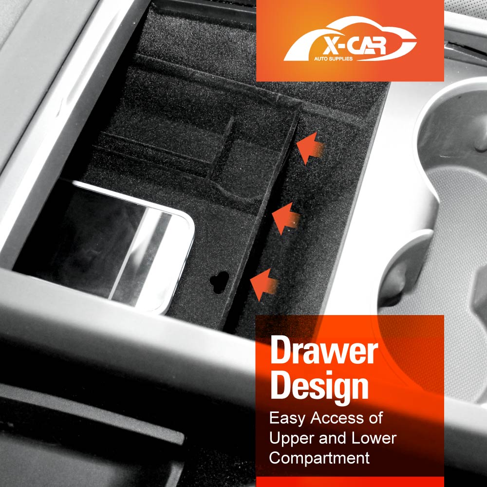 - [Drawer Design]: Unlike other common trays that require removal to access the lower compartment, our Storage Drawer for the center console allows easy access to both the upper and lower compartments, effectively doubling the available storage space.
