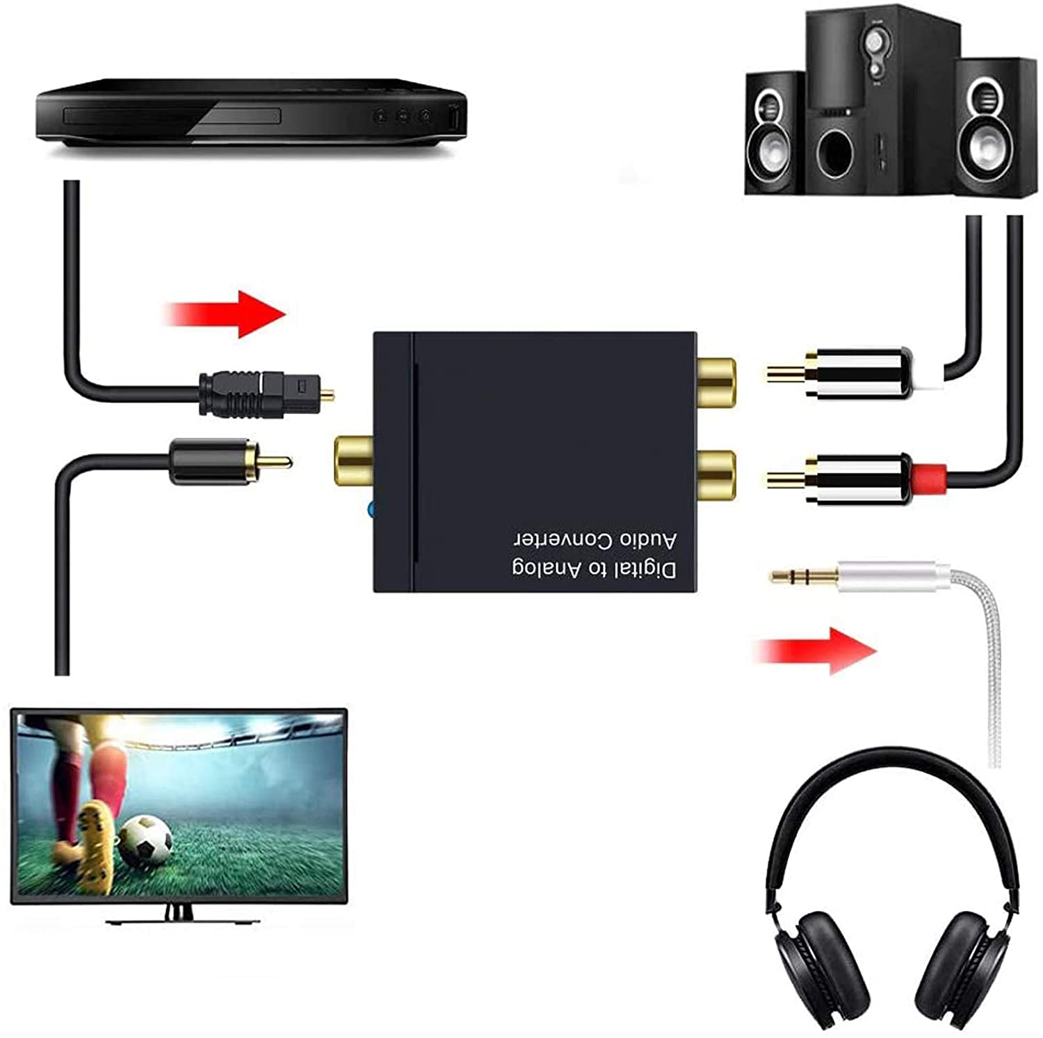 Digital SPDIF Coaxial Toslink to Analog RCA L/R Adapter Converter with Optical Cable for Xbox DVD PS4 Home Theatre Apple TV