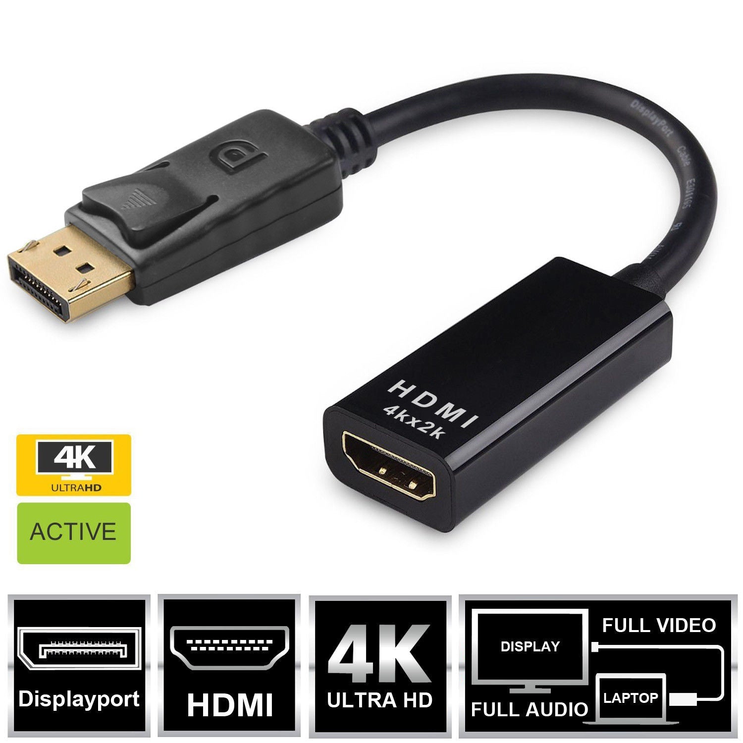 - Portable Adapter Connects a DisplayPort (DP, DP++, DisplayPort++) Equipped Laptop or Desktop to an HDTV, Monitor,or Projector with HDMI Input. An HDMI Cable (Sold Separately) is required