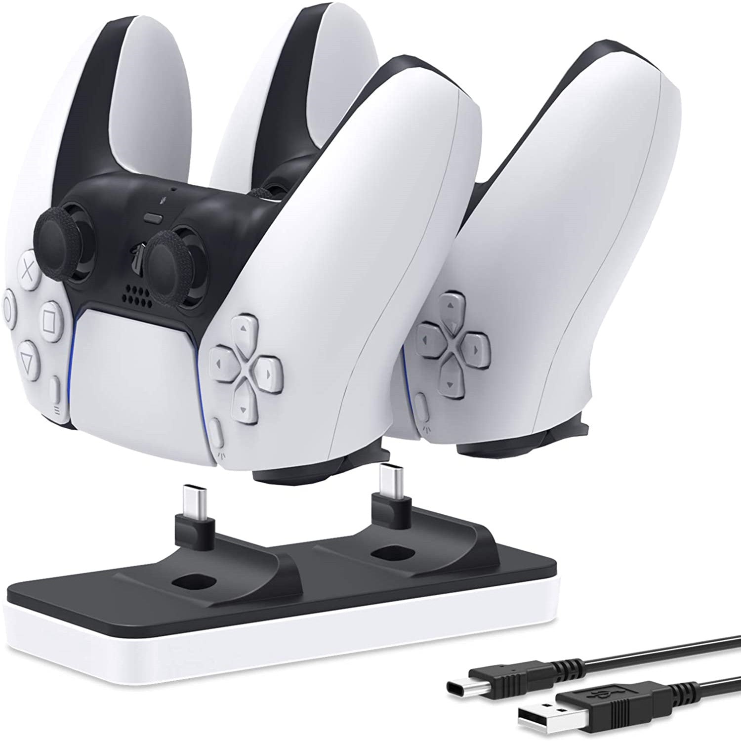 - [Dual PS5 Controller Charging Dock] - Built-in 2 USB Type C fast charging ports, you can safely charge two dualsense Sony Playstation 5 Controllers at the same time, the full charge time takes 3-4 hours (please use PS5 console USB port or 5V/2A / higher power source adapter to ensure fast charging)