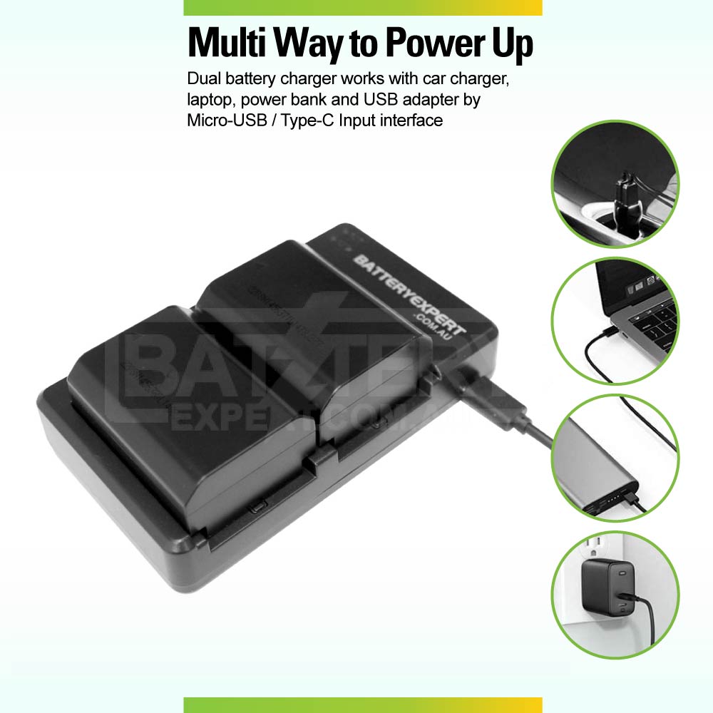 External USB Dual Battery Charger for Sony Alpha a6600/a7 a7R a7S III IV/a7C/A9 II/ILCE-7M3K ILCE-7RM3 ILCE-7RM4 ILCE-7SM3 ILCE-9M2 ILCE-6600M Camera