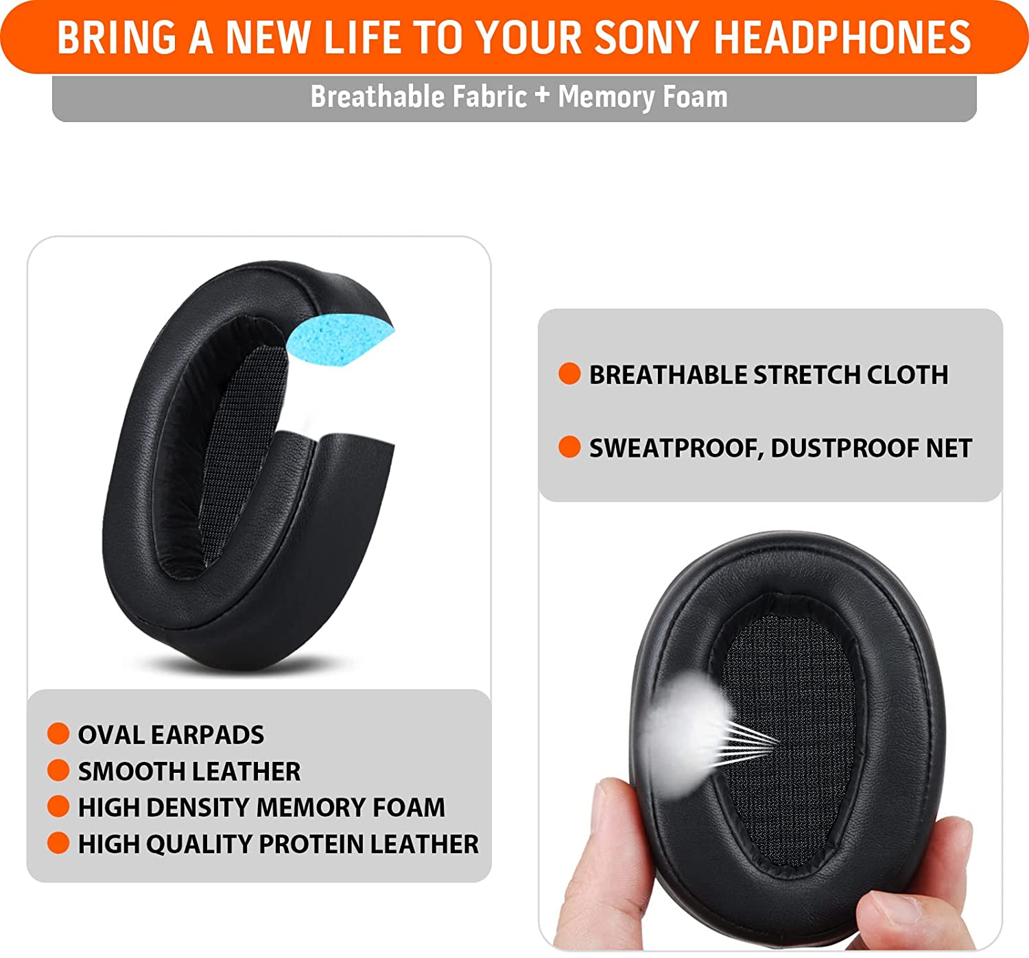 Grey Replacement Cushion Ear Pads for Sony Hear On 2 WH-H900N WH-H900NBM MDR-100ABN Wireless Headphone
