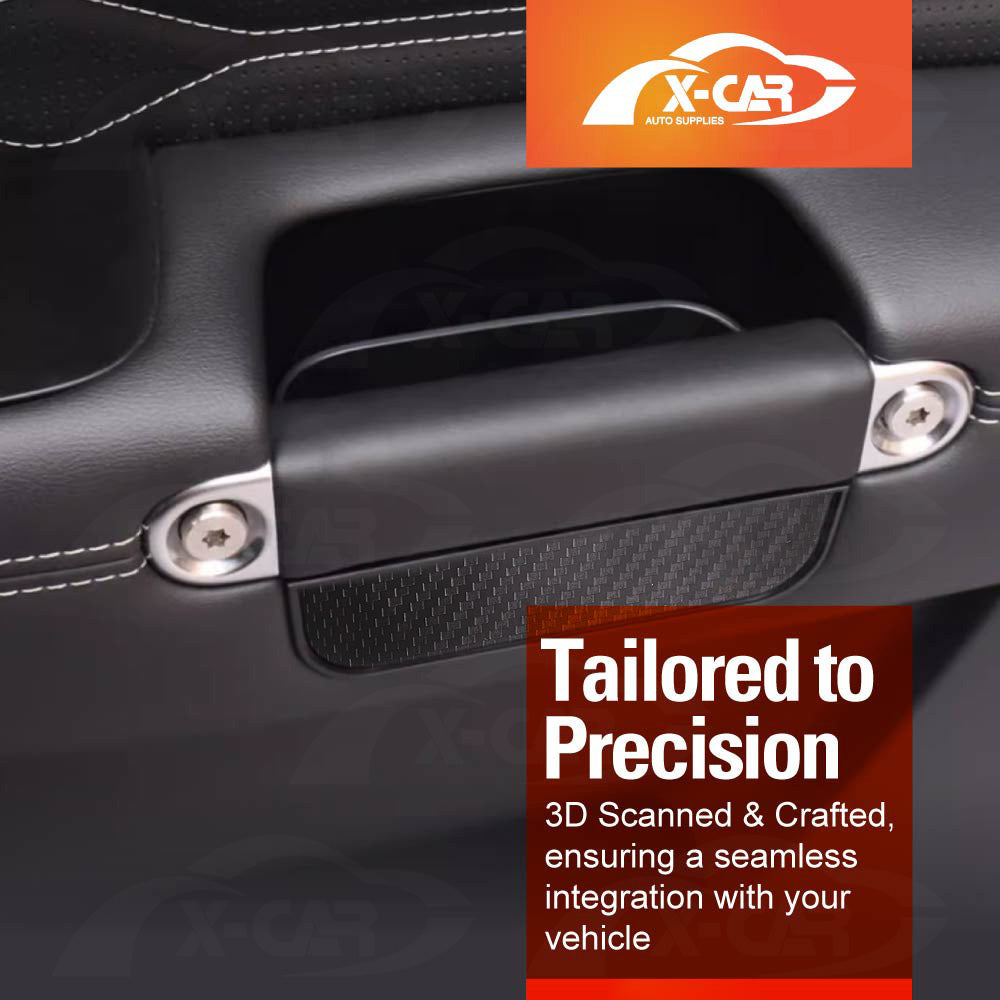 - Custom-Designed: Specifically engineered for GWM Tank 300 tank300 2023-Current, this Door Handle Storage Tray features a sleek carbon fiber pattern style, adding a sporty touch while protecting the vehicle’s surface and offering convenient extra storage.