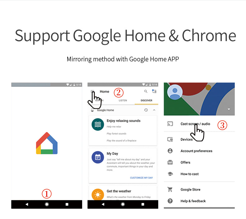 - Input audio, image, text on TV and projector via HDMI port. Compatible with DLNA/Chromecast mode, you can switch the mode on a different device.