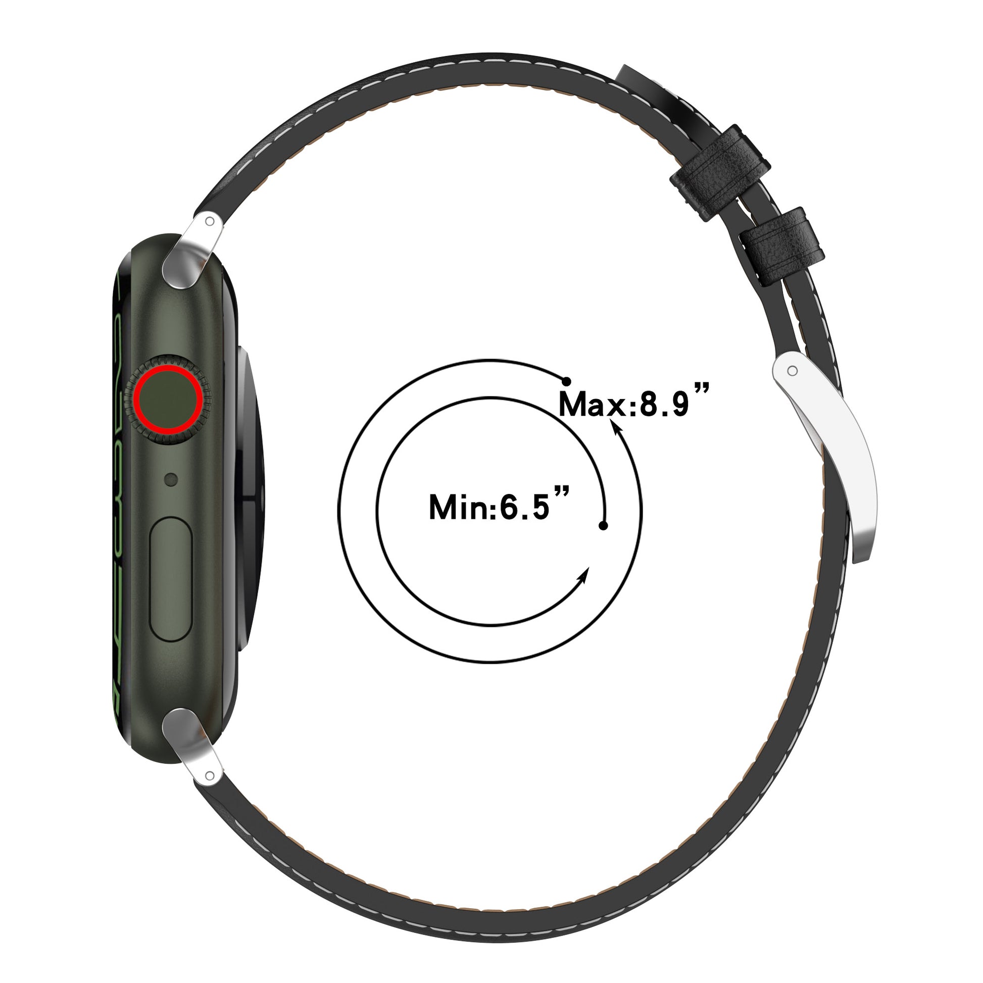 - STYLISH DESIGN: This watch band adopts fashionable leather style, exquisite craftsmanship with Anodized Silver stainless steel watch buckle and seamless classic stitching make your Apple watch looks elegant and distinguished.