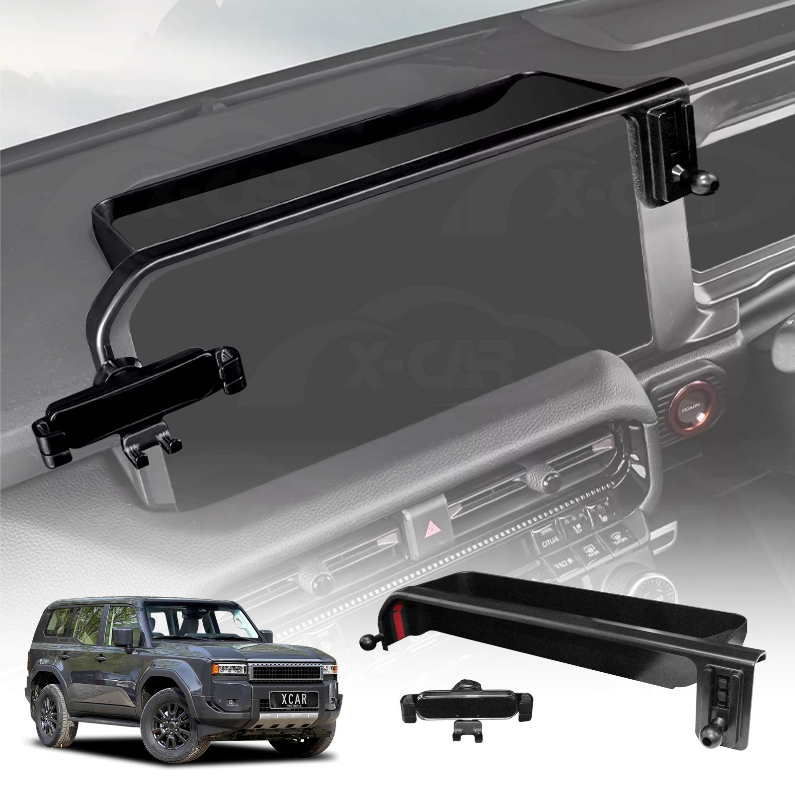- Customized Design:This phone holder with storage tray is specifically designed for Toyota Prado 250 Series 2024-Current, ensuring a perfect fit behind the central console screen. This custom-molded accessory offers seamless integration with the dashboard, adding functionality without altering the vehicle’s original aesthetics.