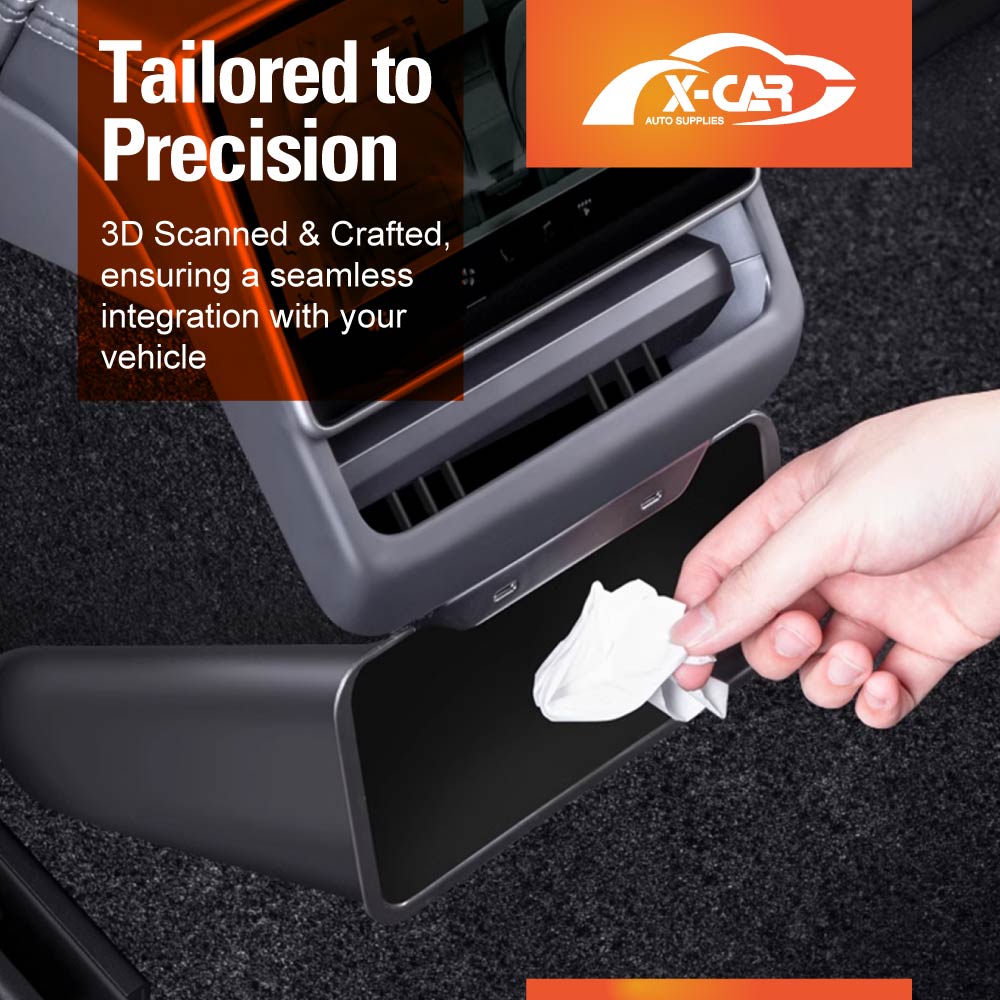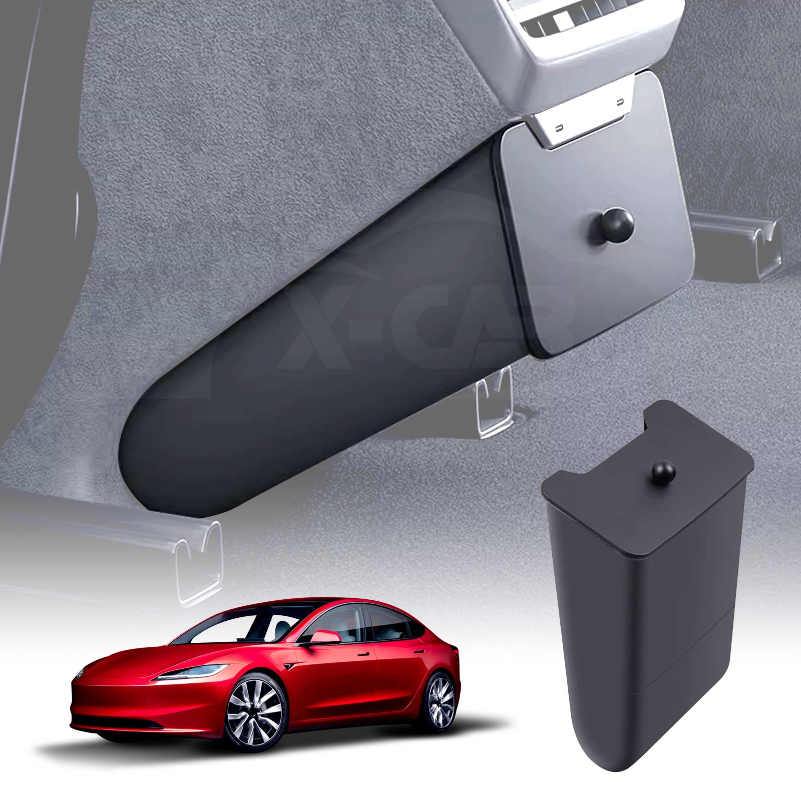 Premium ABS Rear Bin with Magnetic Lid for Tesla Model 3 Highland 2023-2025 Trash Can Interior Car Organizer Accessories