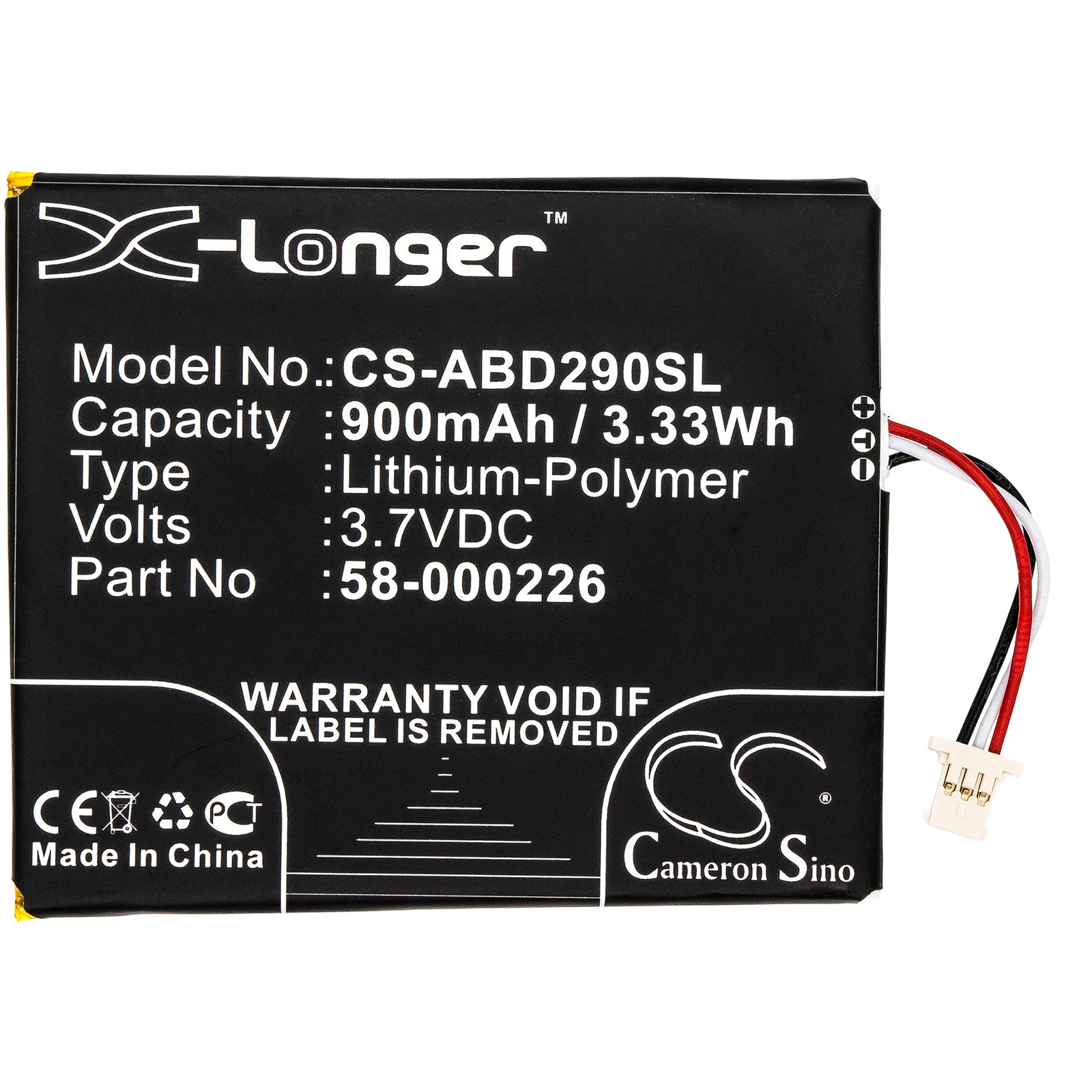 | Capacity | 900 mAh |