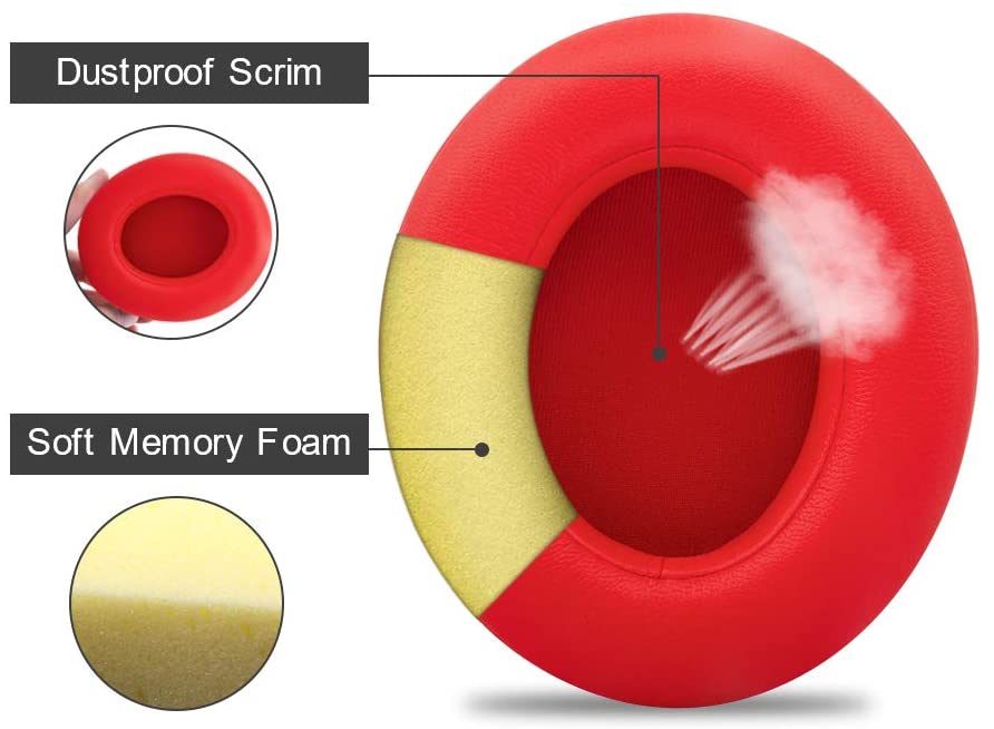 Replacement Ear Pads Cushions in Red for Beats Studio 2.0 3.0 Over-the-Ear Headphones
