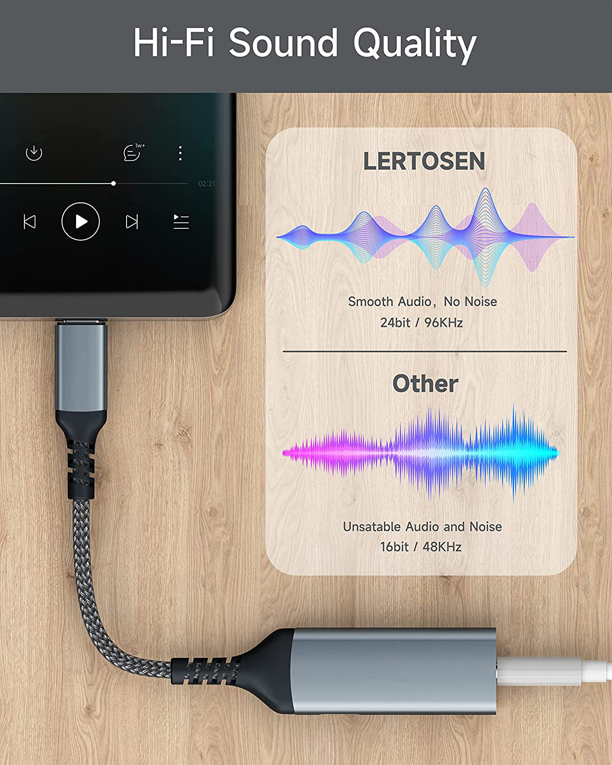 - Hi-Res Audio DAC Chip: This USB-C to 3.5mm audio adapter built-in advanced DAC chip supports digital Hi-Res audio (High-Resolution Audio) and is compatible with CTIA and OMTP. ELASO USB-C to aux adapter supports DAC with up to 24bit/96Khz, ADC with 24bit/48Khz. All ensures stable, high-quality audio transmission and no current noise won't hurt your ears.