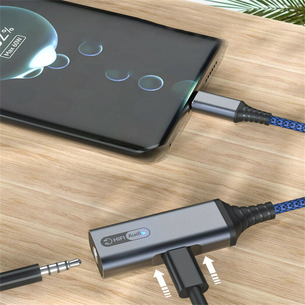 USB-C to 3.5mm Aux Audio Jack and Charger Adapter QC Quick Charging PD 60W Fast Charging Cable for Galaxy S22/S21/S20/Note 20,Pixel 4/3/2/XL,iPad Pro
