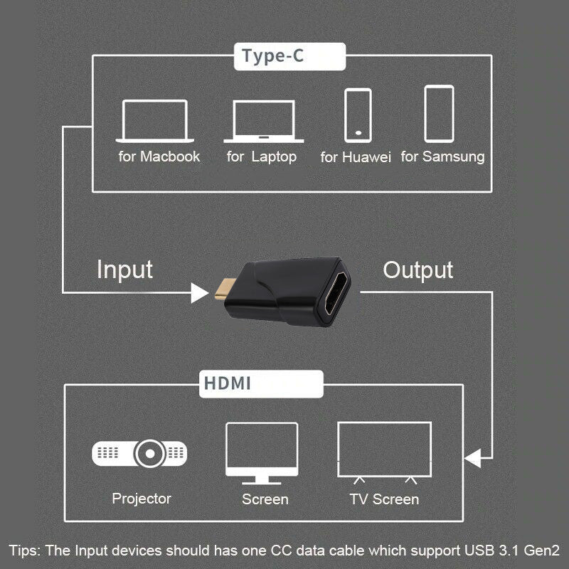 USB-C to HDMI Adapter Male to Female Converter 4K For PC Laptop Tablet Mobile USB Type C 3.1