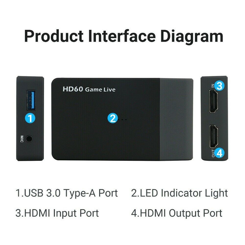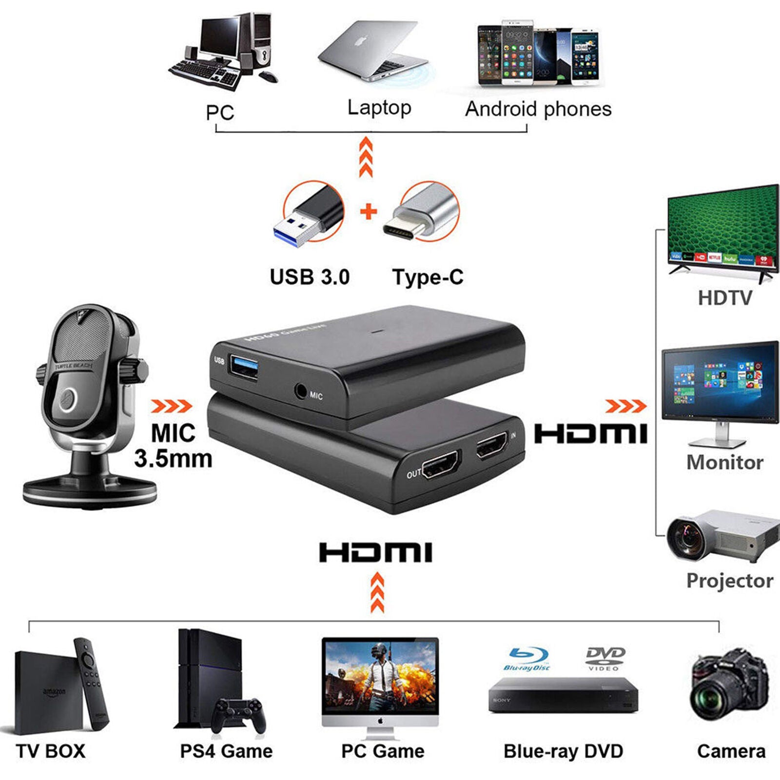 USB to HDMI Video Capture Card 4K 30P 1080P 60fps Game Video Record Live Streaming Recorder
