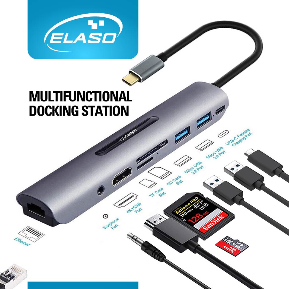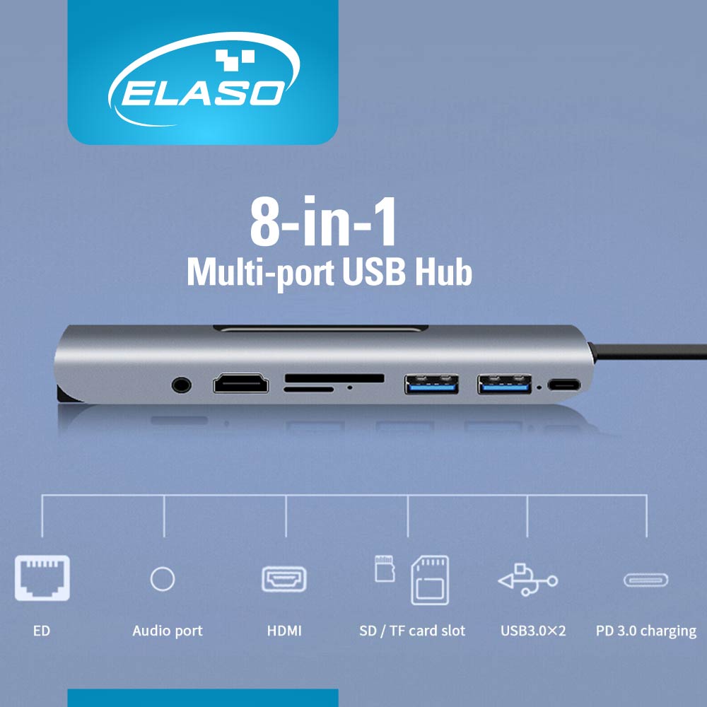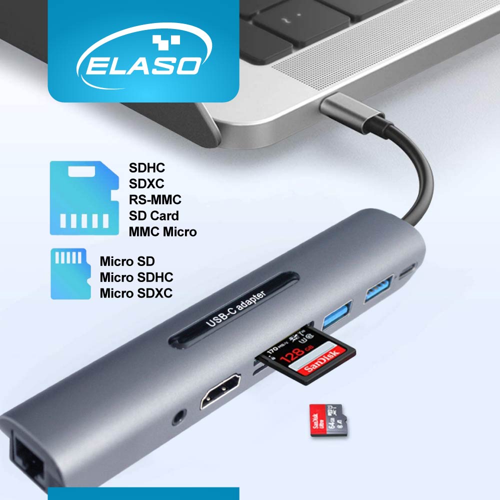 - ALL-IN-ONE SOLUTION: This plug-and-play USB C Hub includes 2 USB 3.0 ports, USB-C female for charging or data transfer, up to 100W power delivery port, 4K HDMI video output, RJ45 Gigabit Ethernet port, Audio/Mic 2-in-1 port and SD/Micro SD card reader slots in compact and sleek design.