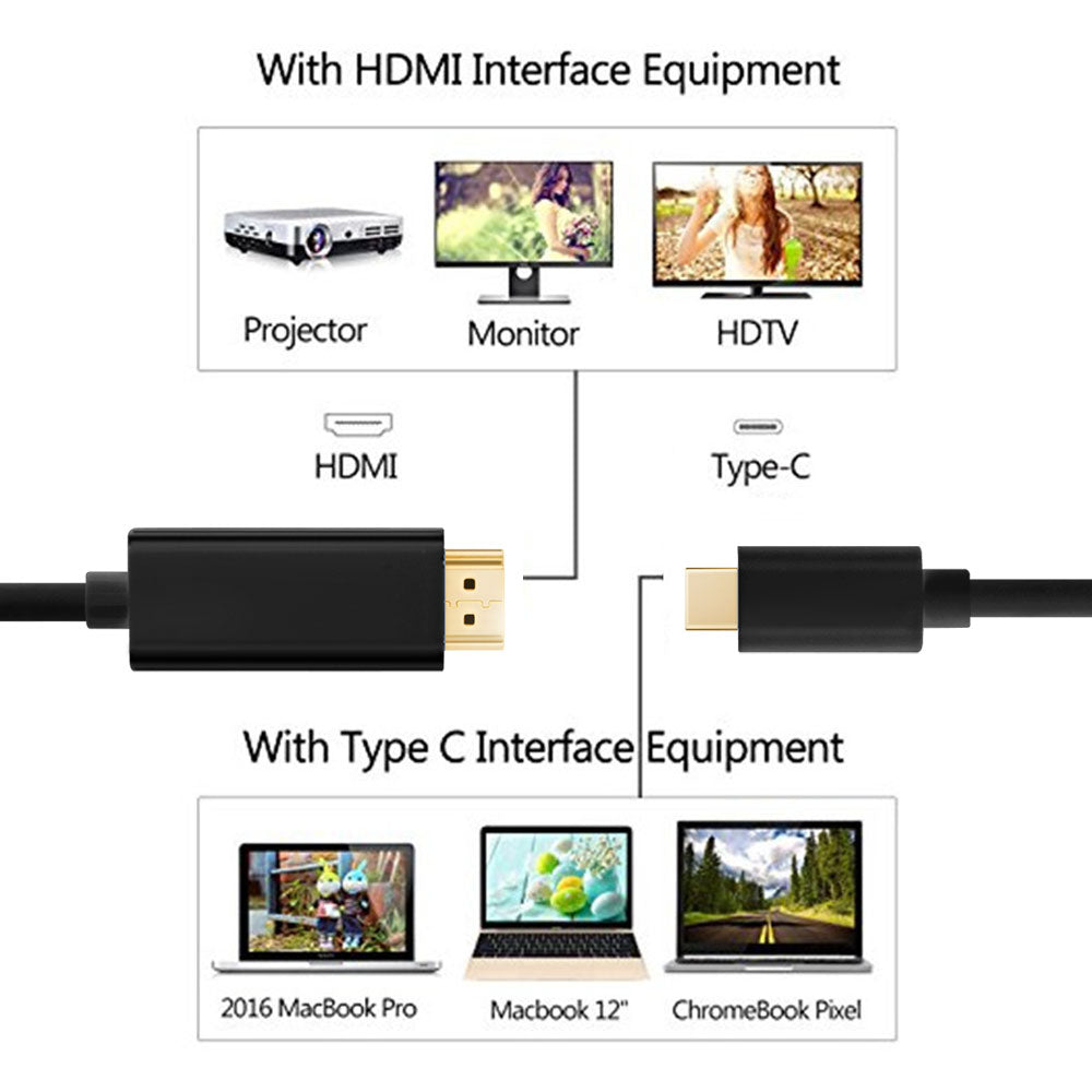 - This cable only works in one direction. The monitor must be HDMI, and the smart device must be USB-C. Connect between video-enabled USB-C Device and HDMI monitors/TVs/Projectors.