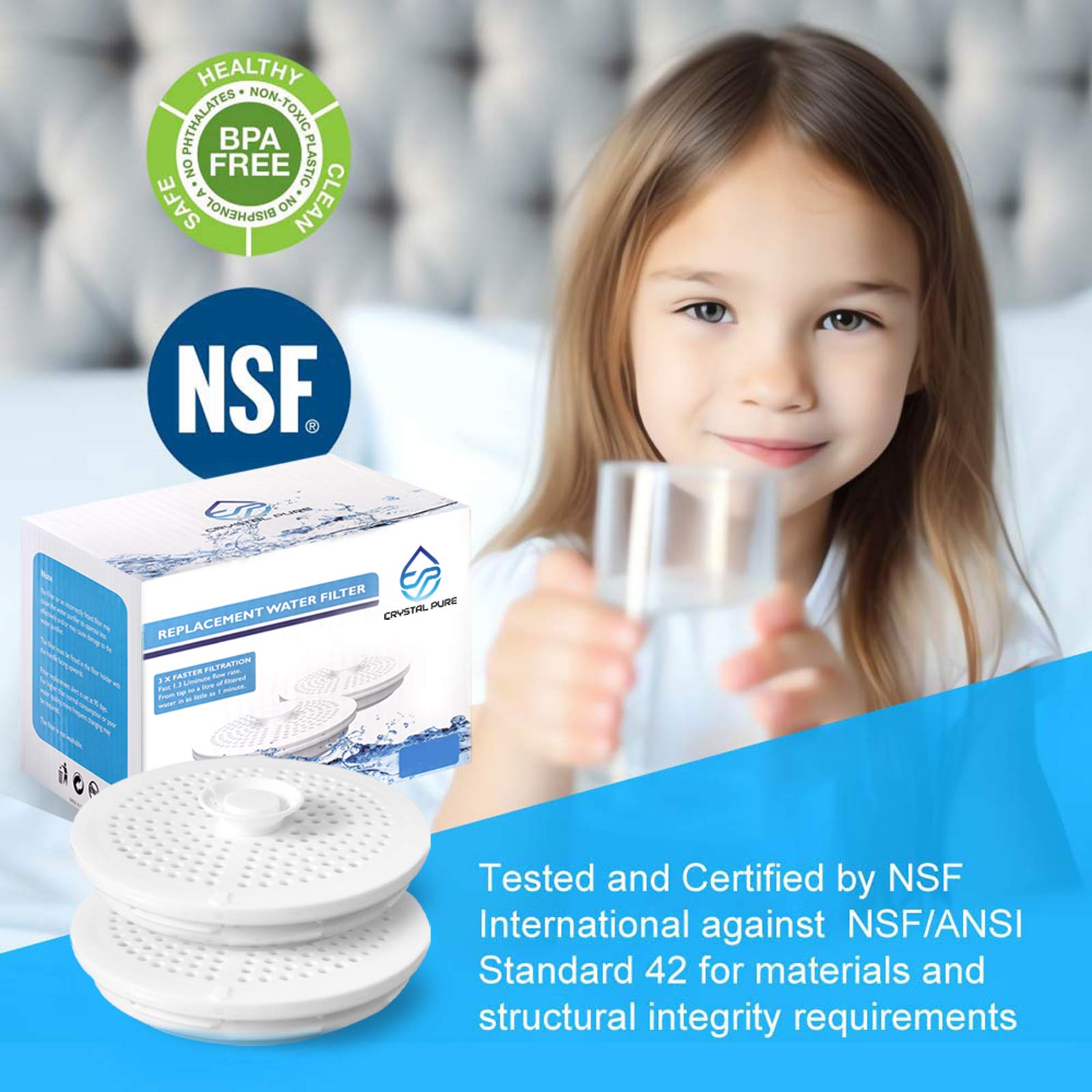 - [Efficiency filtration]: Crystal Pure premium replacement filter cartridge features an advanced 4-stage filtration system, including a pre-sediment layer, ion exchange resin, activated carbon, and micro-filtering membrane. It effectively reduces chlorine, heavy metals, pesticides, limescale, microplastics, and suspended particles to deliver fresher, cleaner, healthier water.