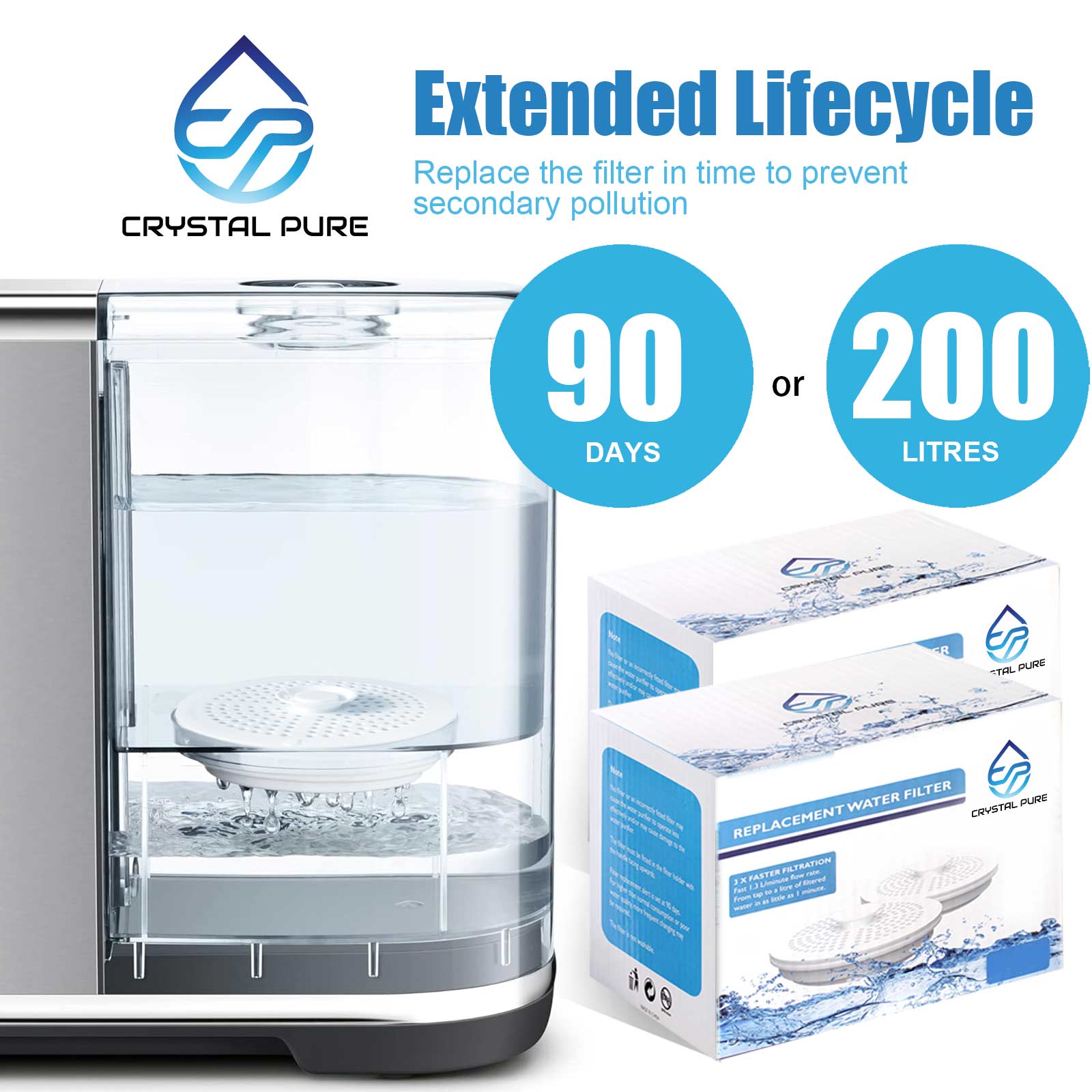 - [Installation guide]: Remove the water tank, discard old filter and remaining water. Soak the new filter in cold water for 10 minutes, gently shake to release air bubbles. Insert firmly, flush twice with 2 litres of water, and it's ready to use. Black particles during first use are harmless carbon residues.