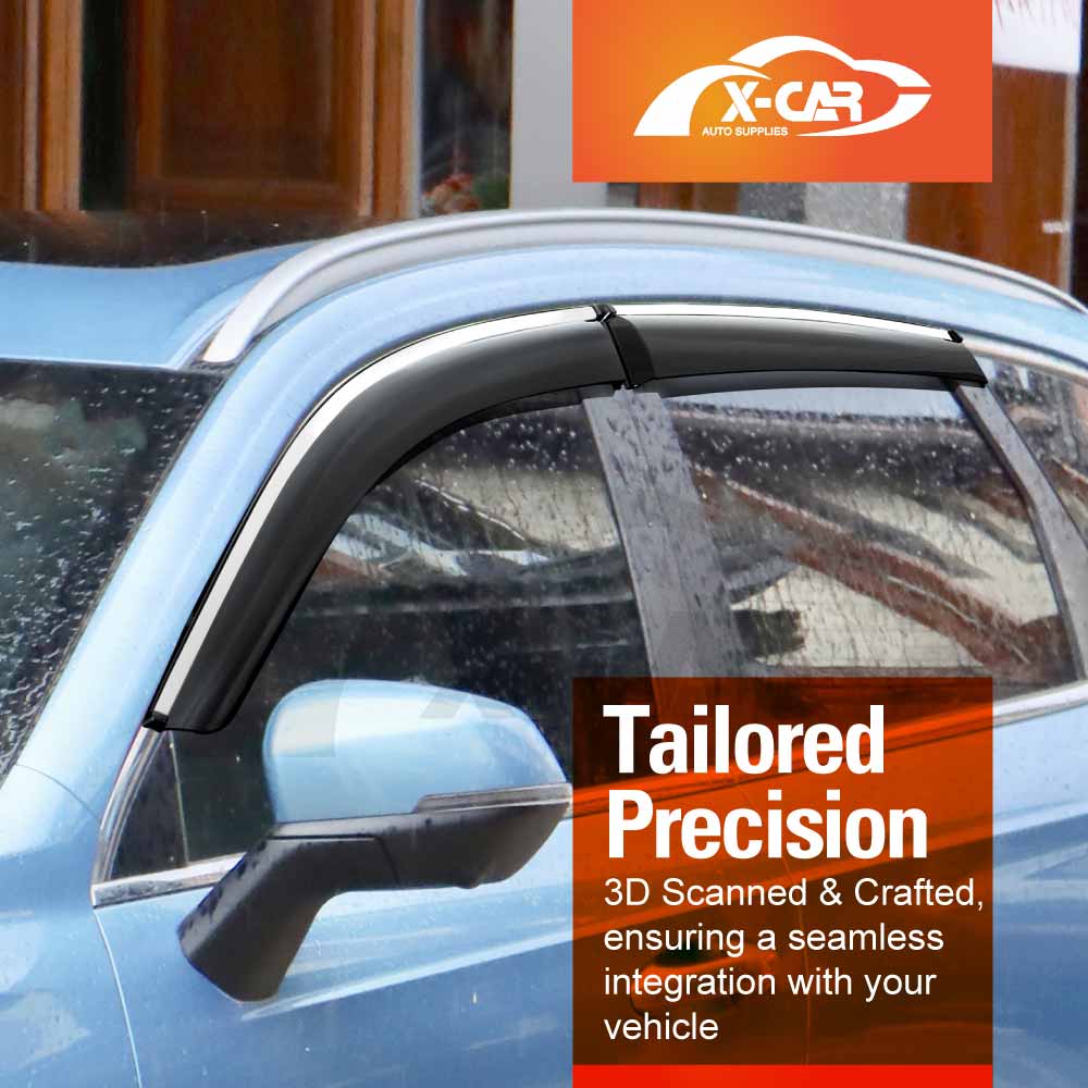 - Maximum Fresh Air Enjoyment. Let the fresh air in and keep the rain out! X-CAR side window visor spans the entire window channel, allowing you to open your windows and enjoy fresh air even when raining. It also reduces wind noise and minimizes turbulence with open windows.