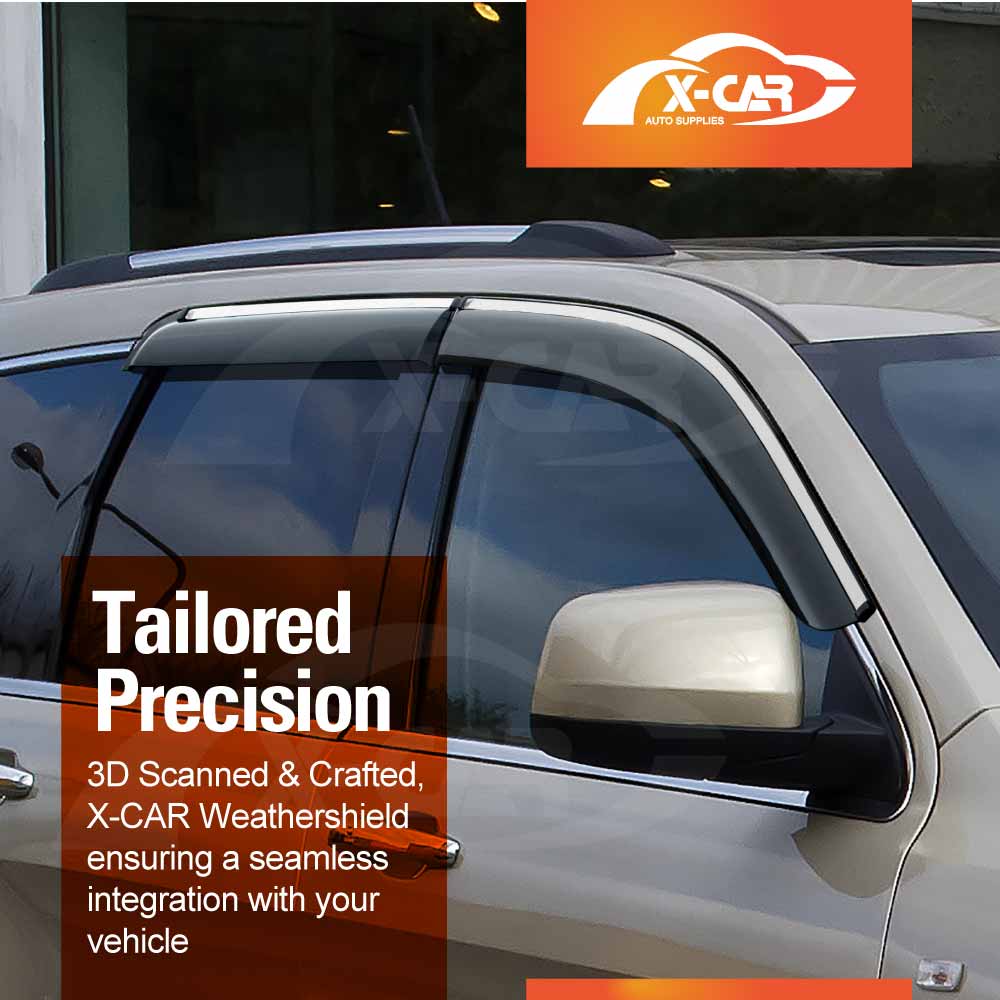- Maximum Fresh Air Enjoyment. Let the fresh air in and keep the rain out! X-CAR side window visor spans the entire window channel, allowing you to open your windows and enjoy fresh air even when raining. It also reduces wind noise and minimizes turbulence with open windows.