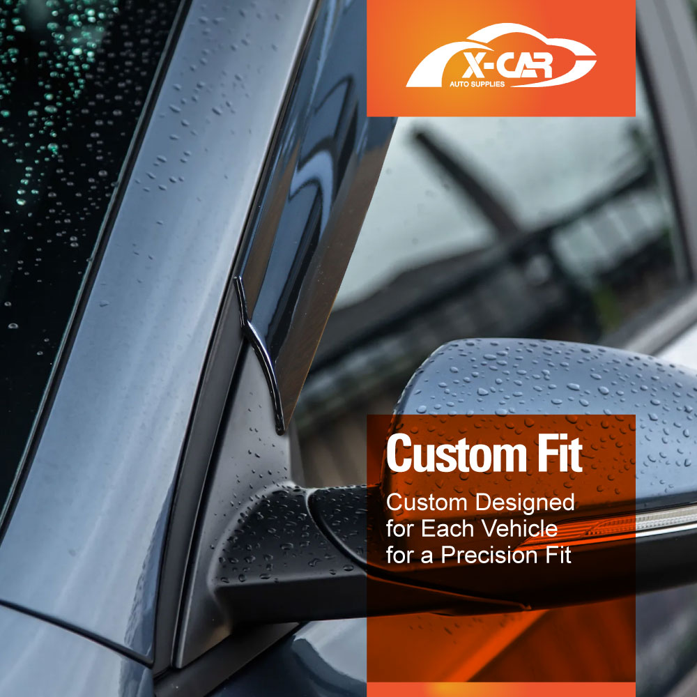 - Maximum Fresh Air Enjoyment. Let the fresh air in and keep the rain out! X-CAR side window visor spans the entire window channel, allowing you to open your windows and enjoy fresh air even when raining. It also reduces wind noise and minimizes turbulence with open windows.