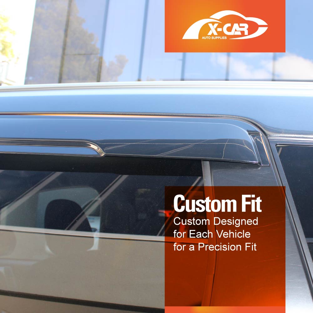 - Maximum Fresh Air Enjoyment. Let the fresh air in and keep the rain out! X-CAR side window visor spans the entire window channel, allowing you to open your windows and enjoy fresh air even when raining. It also reduces wind noise and minimizes turbulence with open windows.
