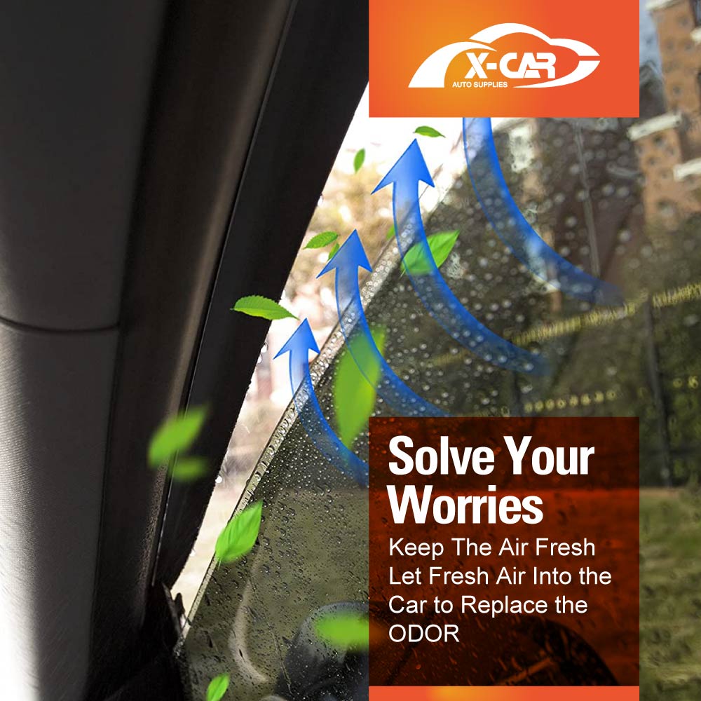 - Maximum Fresh Air Enjoyment. Let the fresh air in and keep the rain out! X-CAR side window visor spans the entire window channel, allowing you to open your windows and enjoy fresh air even when raining. It also reduces wind noise and minimizes turbulence with open windows.