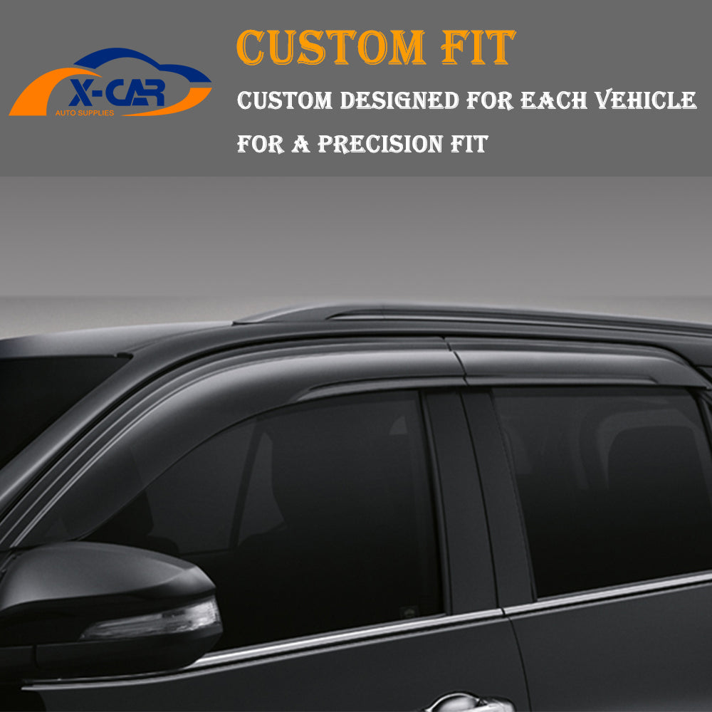 - Maximum Fresh Air Enjoyment. Let the fresh air in and keep the rain out! X-CAR side window visor span the entire window channel which allows you to open your windows and enjoy fresh air even when raining. It also reduces wind noise and minimizes the turbulence with open windows.