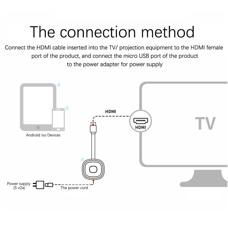 - Easy to operate: No application or software driver is required. In just 3 steps, you can easily enjoy music, videos, photos, office files and websites on the big screen: Plug-> Connect-> Mirror. Plug it into the HDMI-compatible port of the TV and use 5V power, then connect the device through Miracast, Airplay or DLNA mode with instructions, and finally mirror the media on the big screen.